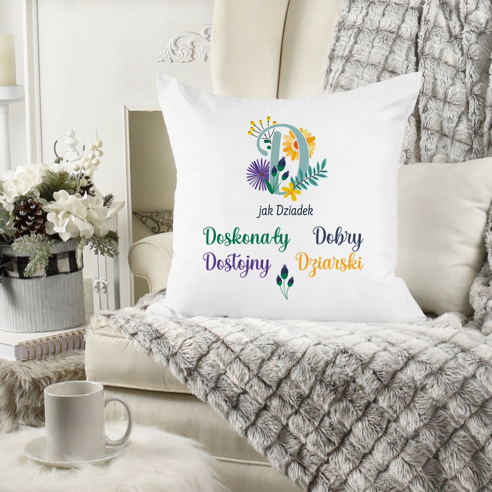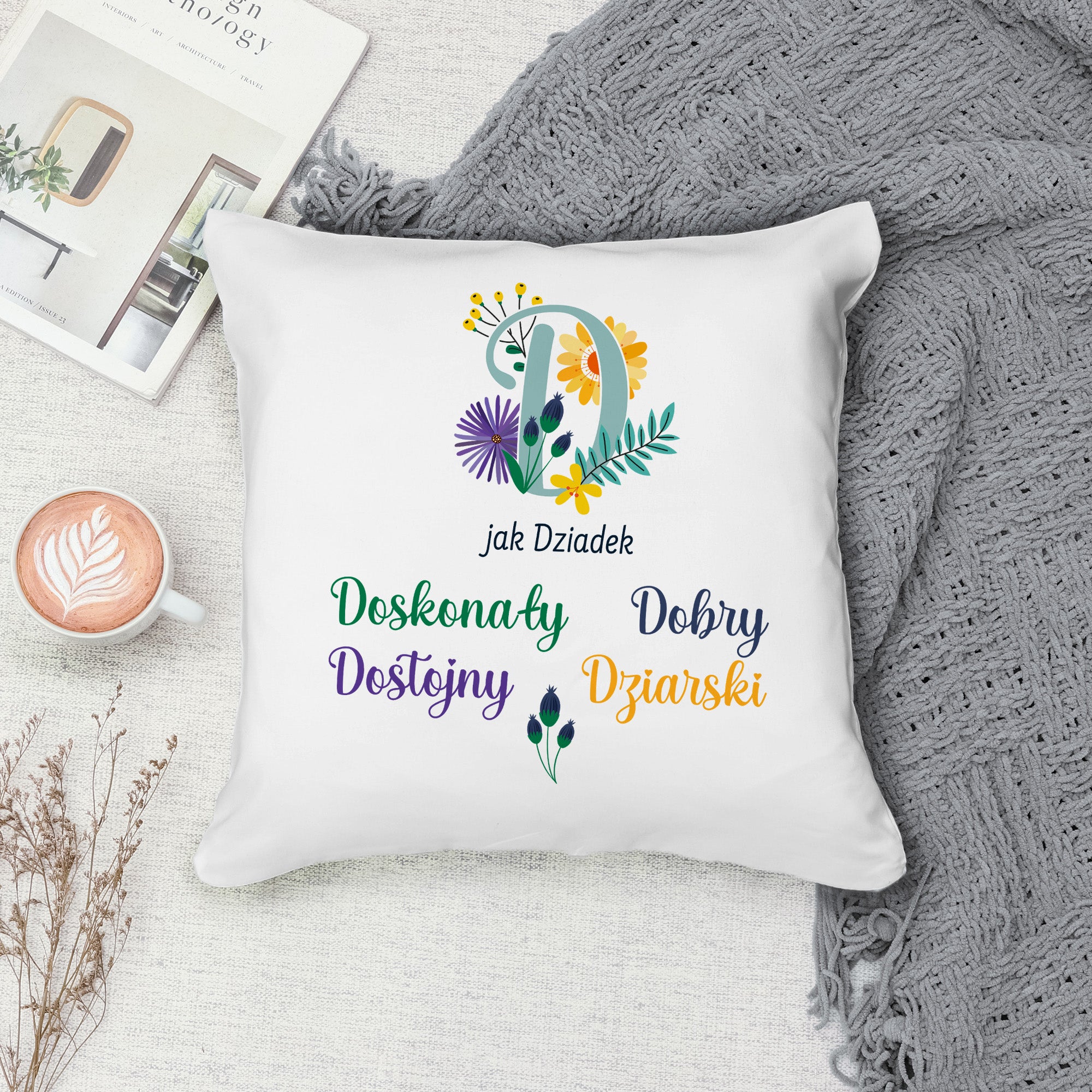 Poduszka na Dzień Dziadka - D jak Dziadek Prezent na Dzień Dziadka