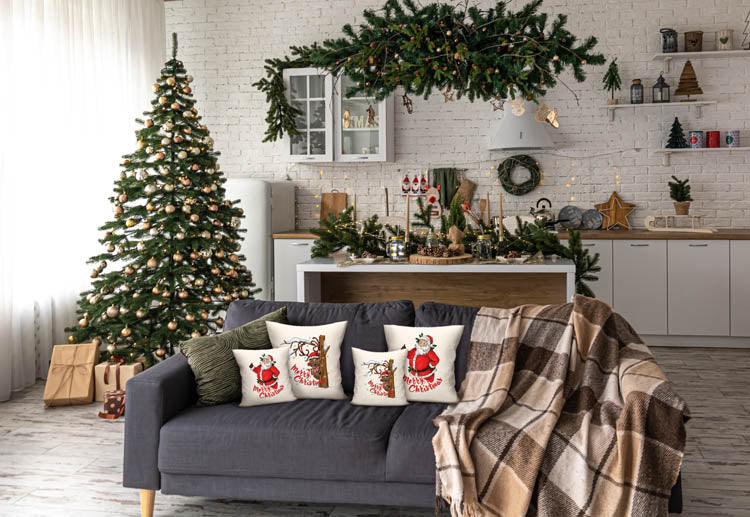 🎅Świąteczne wzory: Każda z poduszek jest udekorowana uroczymi wzorami przedstawiającymi świętego Mikołaja i renifera. Te klasyczne i sympatyczne postacie są ikonami Bożego Narodzenia, które dodają wnętrzu niepowtarzalnego uroku.