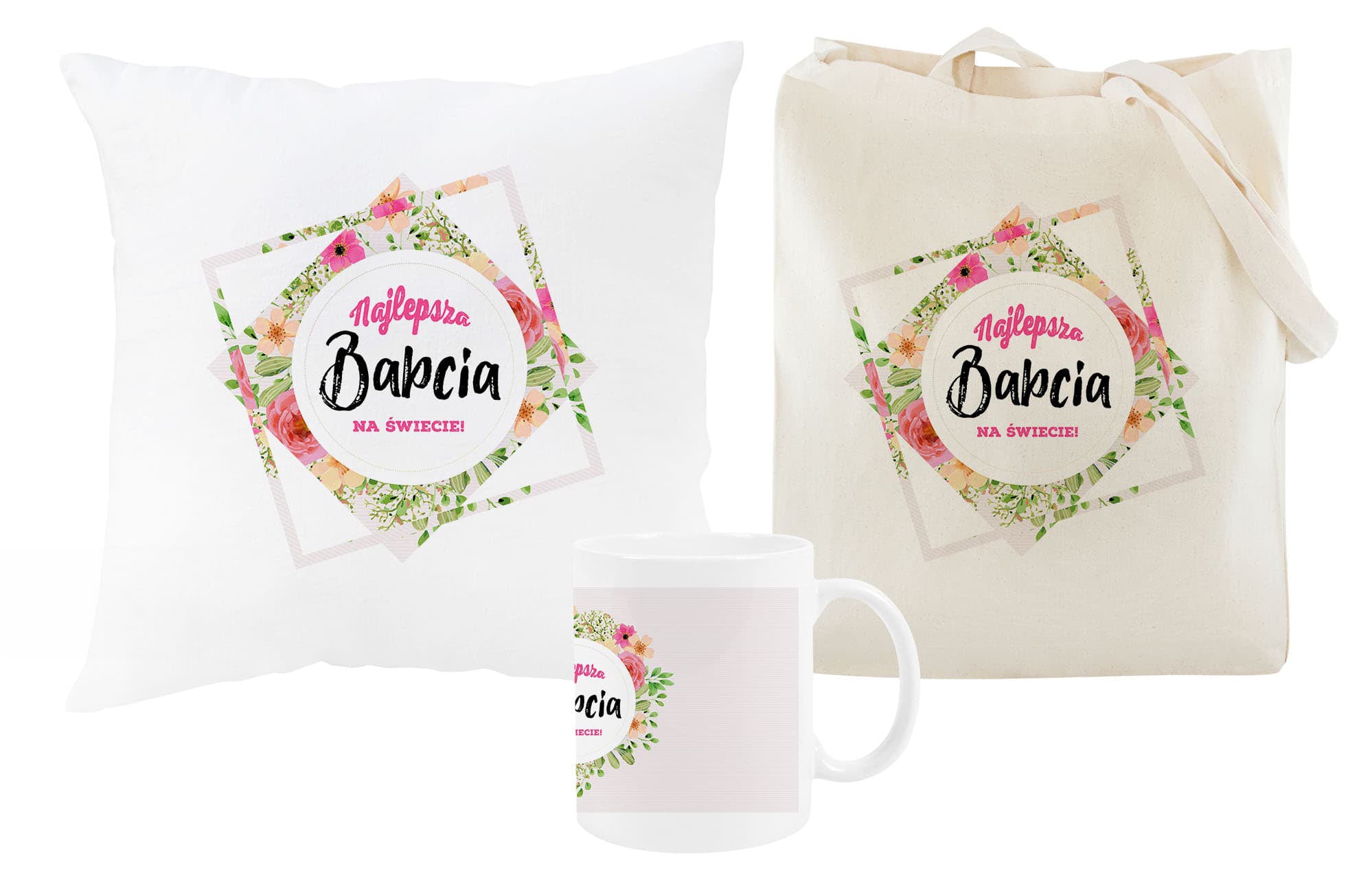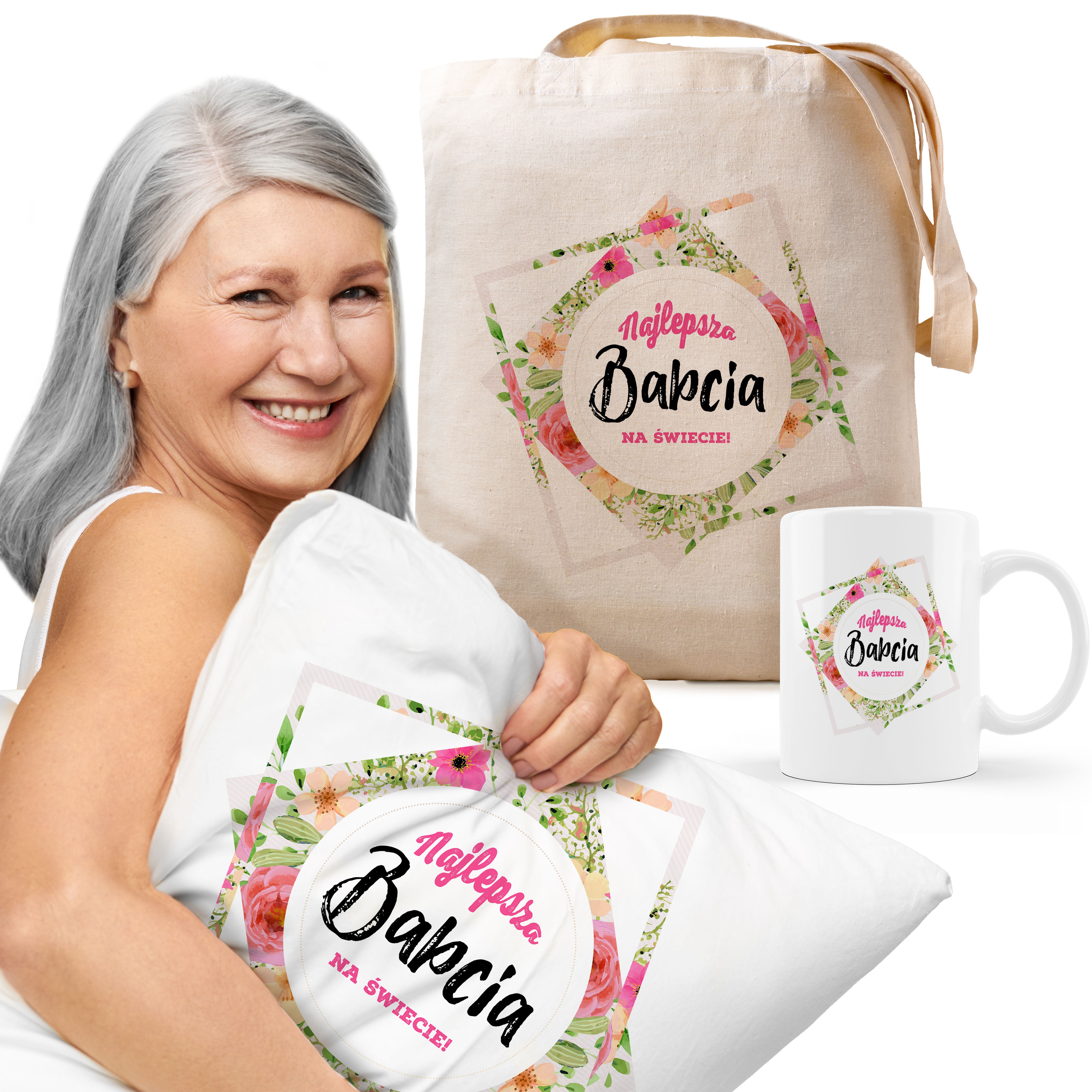 Zestaw Torba Bawełniana,Kubek,Poduszka Najlepsza Babcia na Świecie Prezent na Dzień Babci