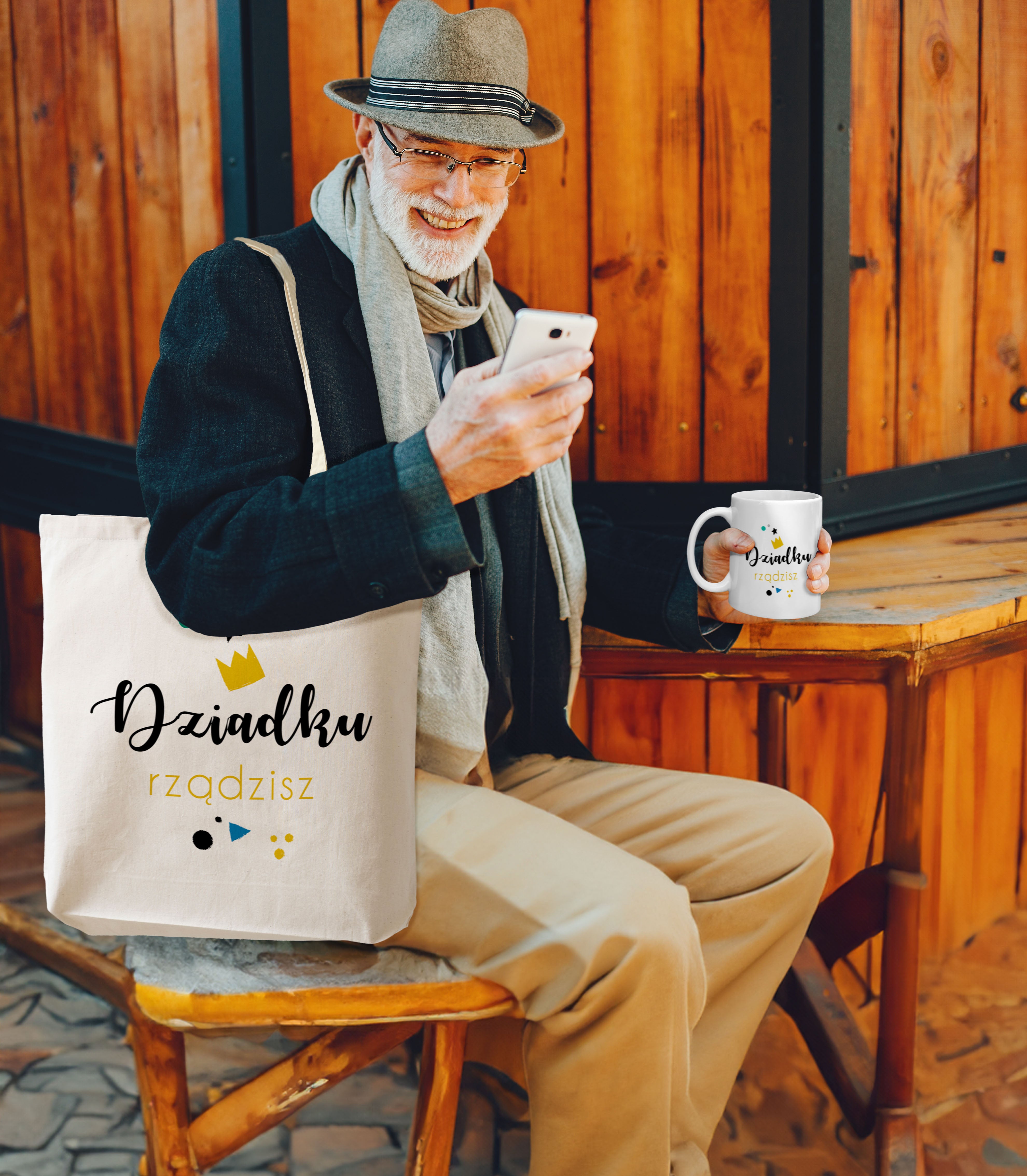 Zestaw Torba Bawełniana,Kubek,Poduszka Dziadku Rządzisz Prezent na Dzień Dziadka