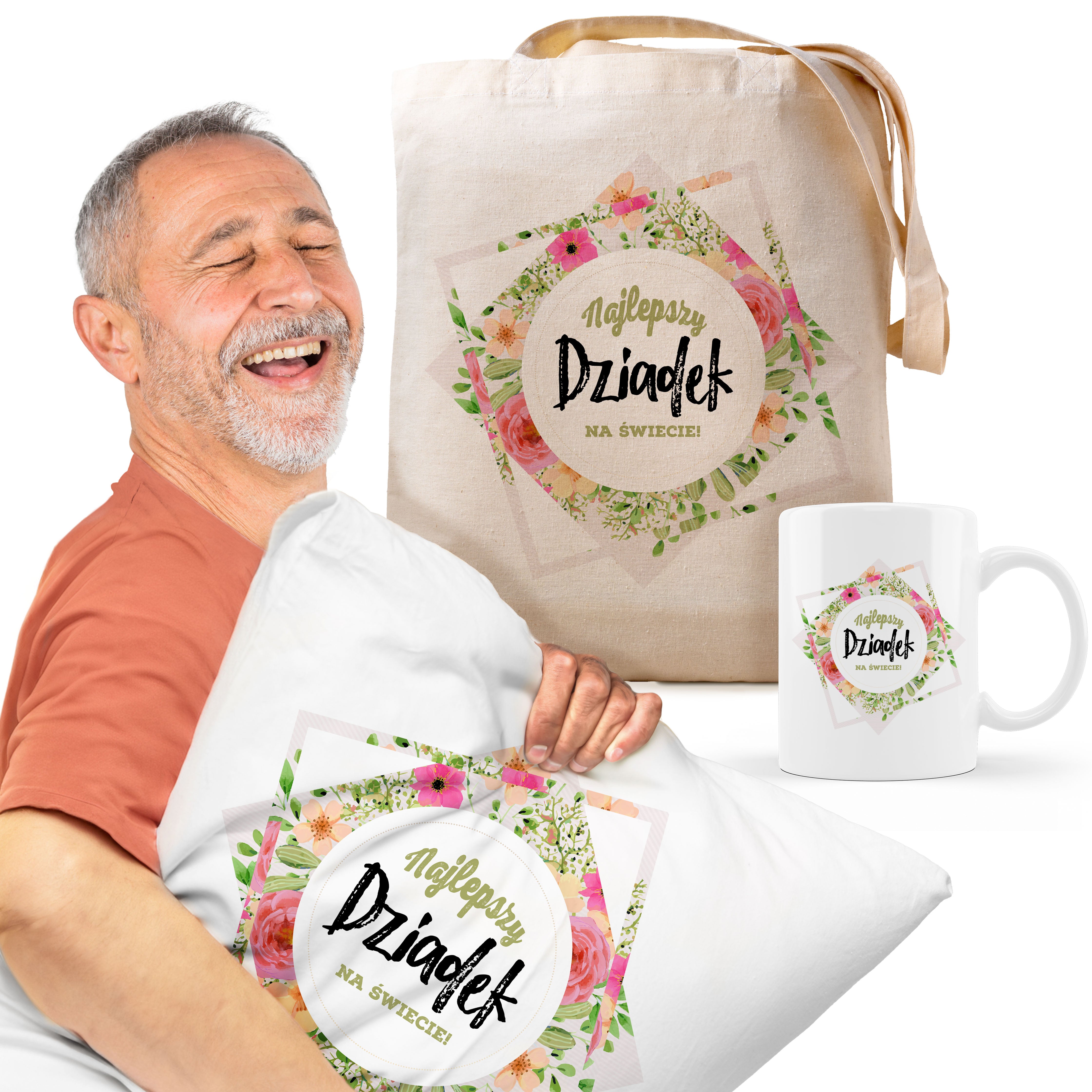 Zestaw Torba bawełniana,Kubek,Poduszka Najlepszy Dziadek na Świecie Prezent Dzień Dziadka