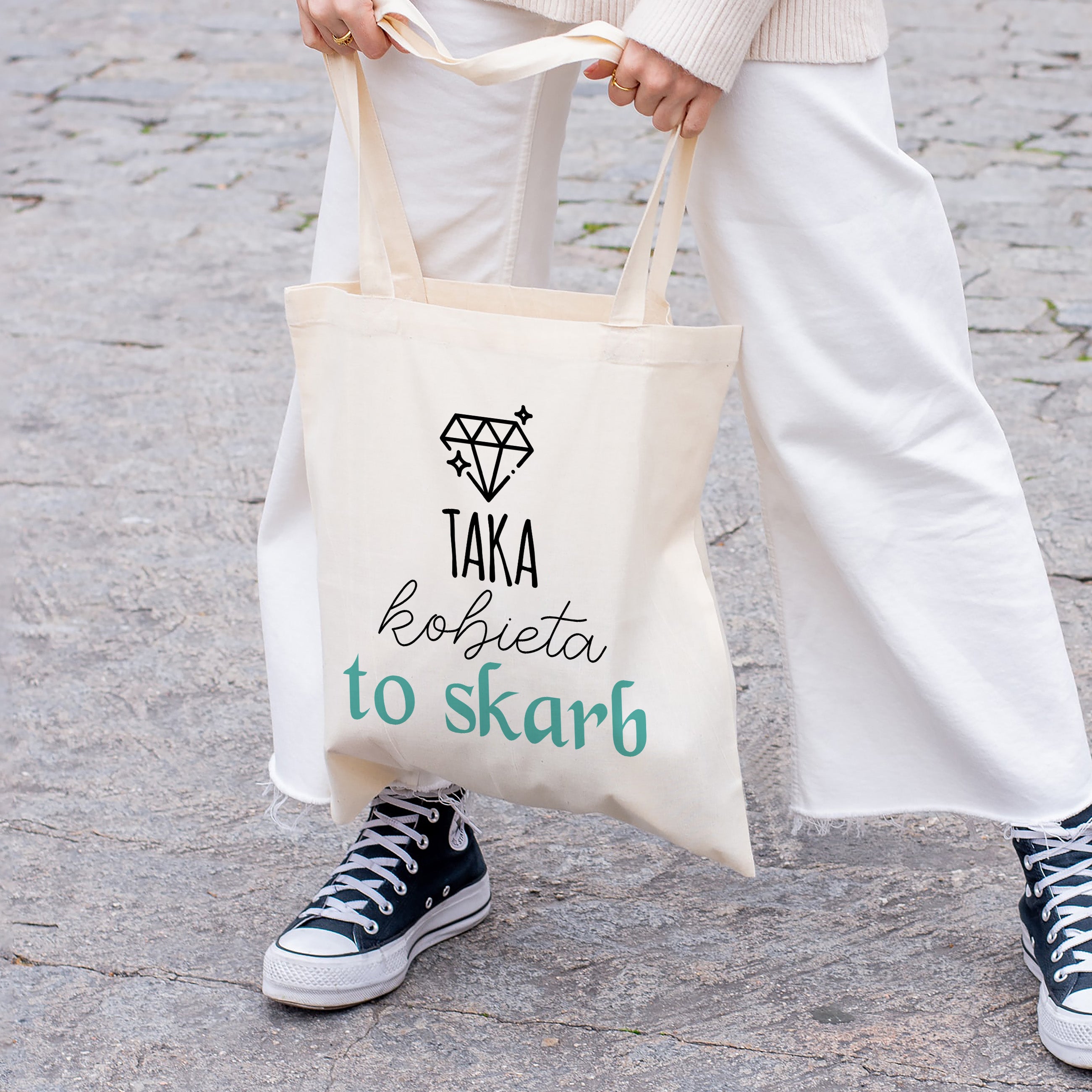Prezent na Dzień Kobiet - Torba z nadrukiem ecru
