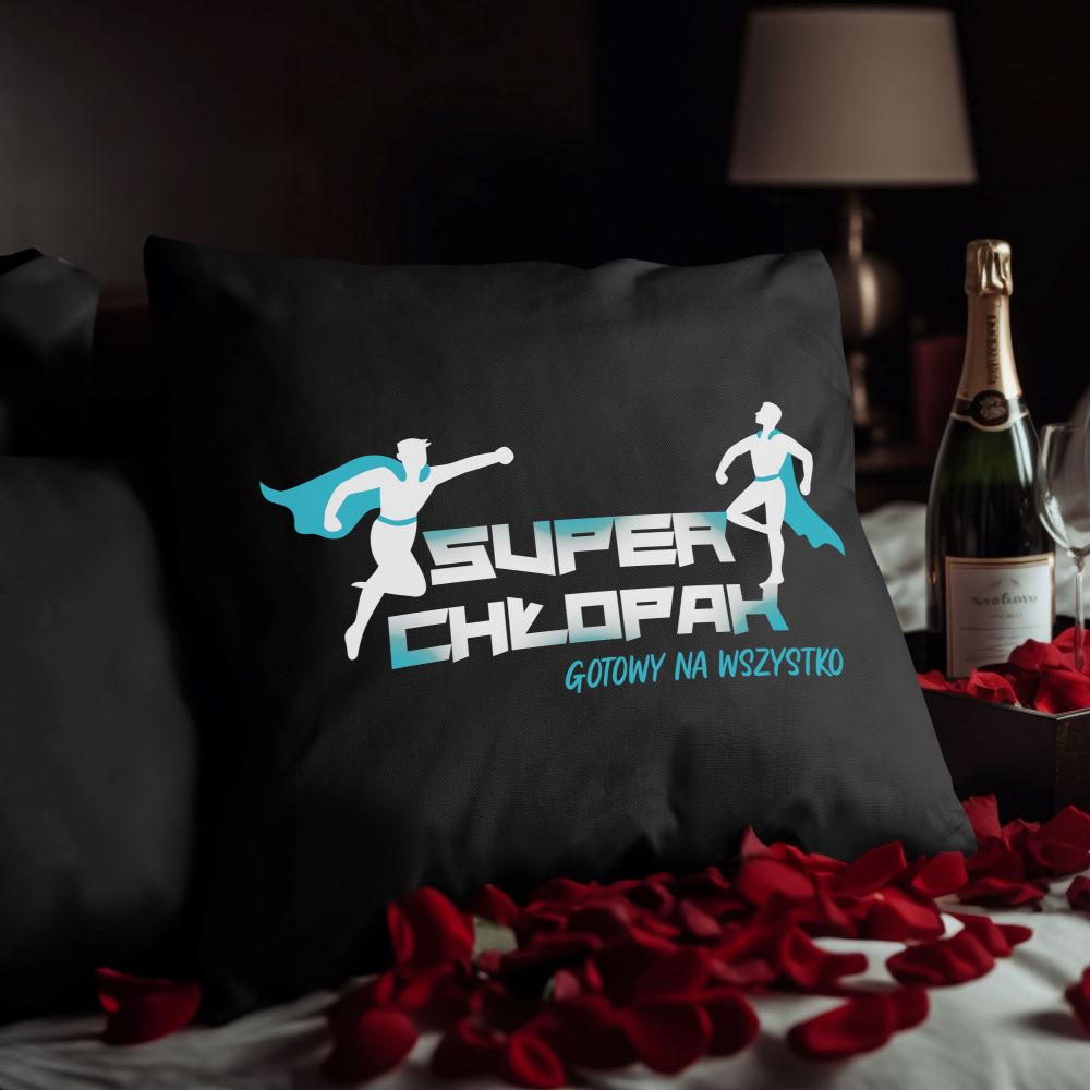 Prezent na walentynki - poduszka SUPER CHŁOPAK GOTOWY NA WSZYSTKO
