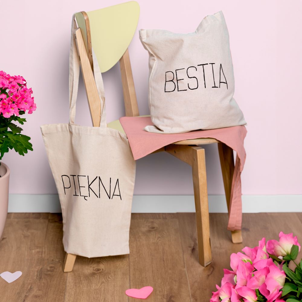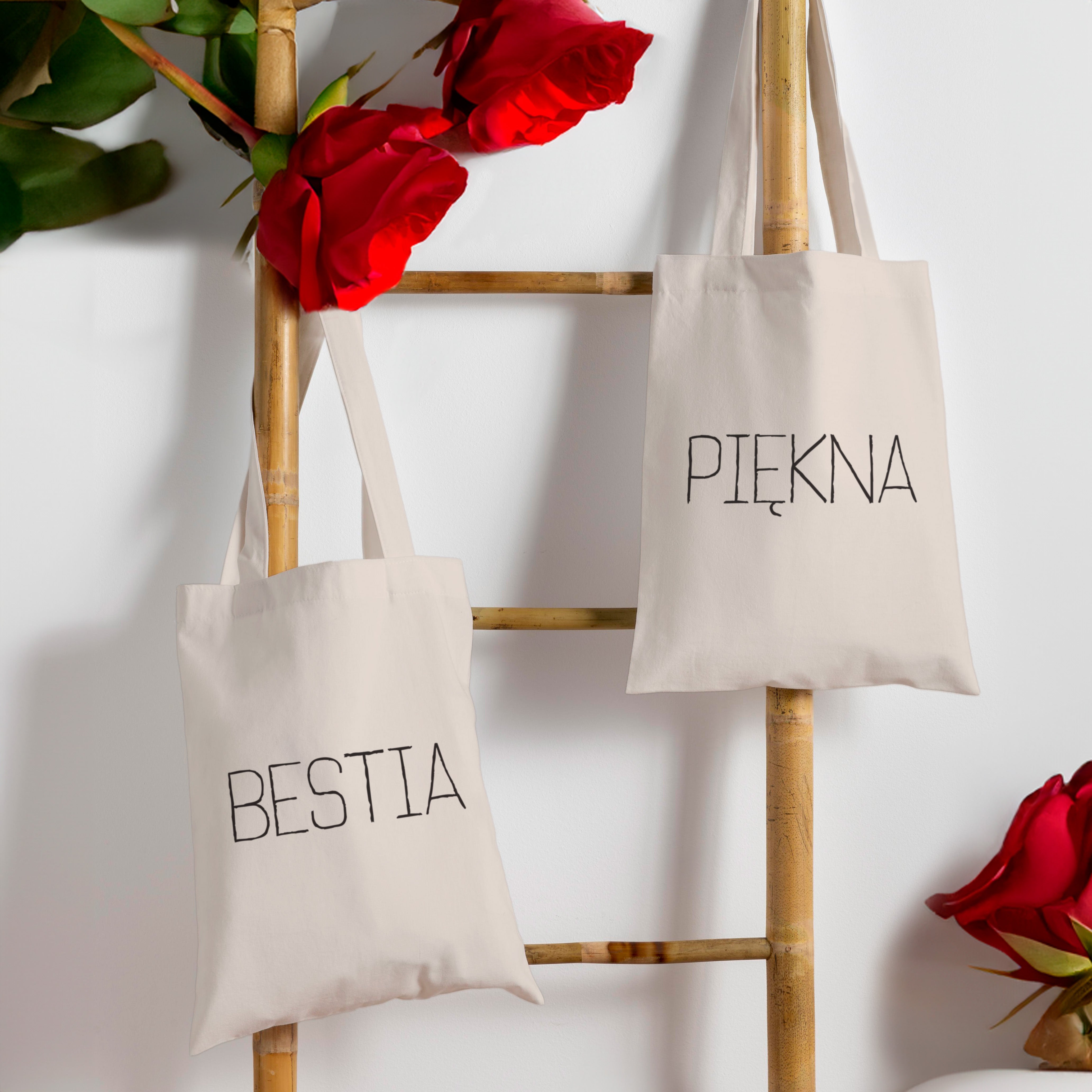 Dwie torby bawełniane z nadrukiem. Idealny modowy akcent dla par i oryginalny prezent na Walentynki.