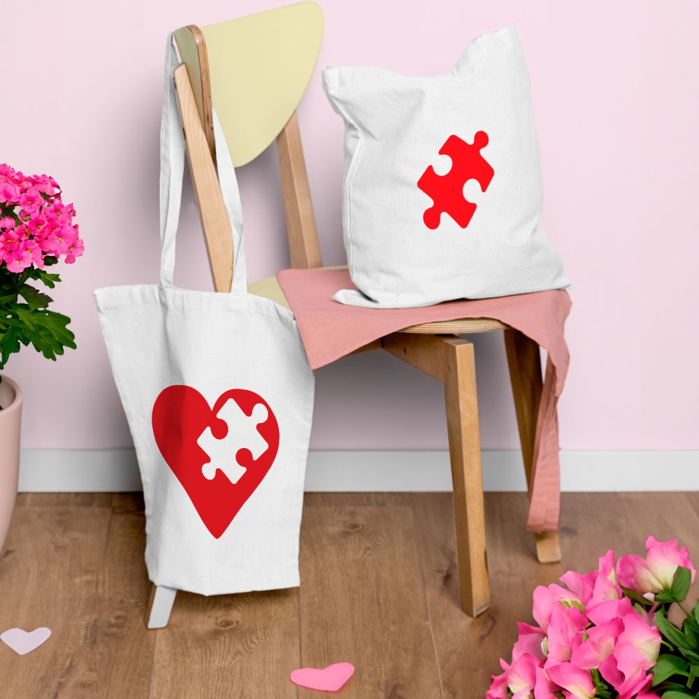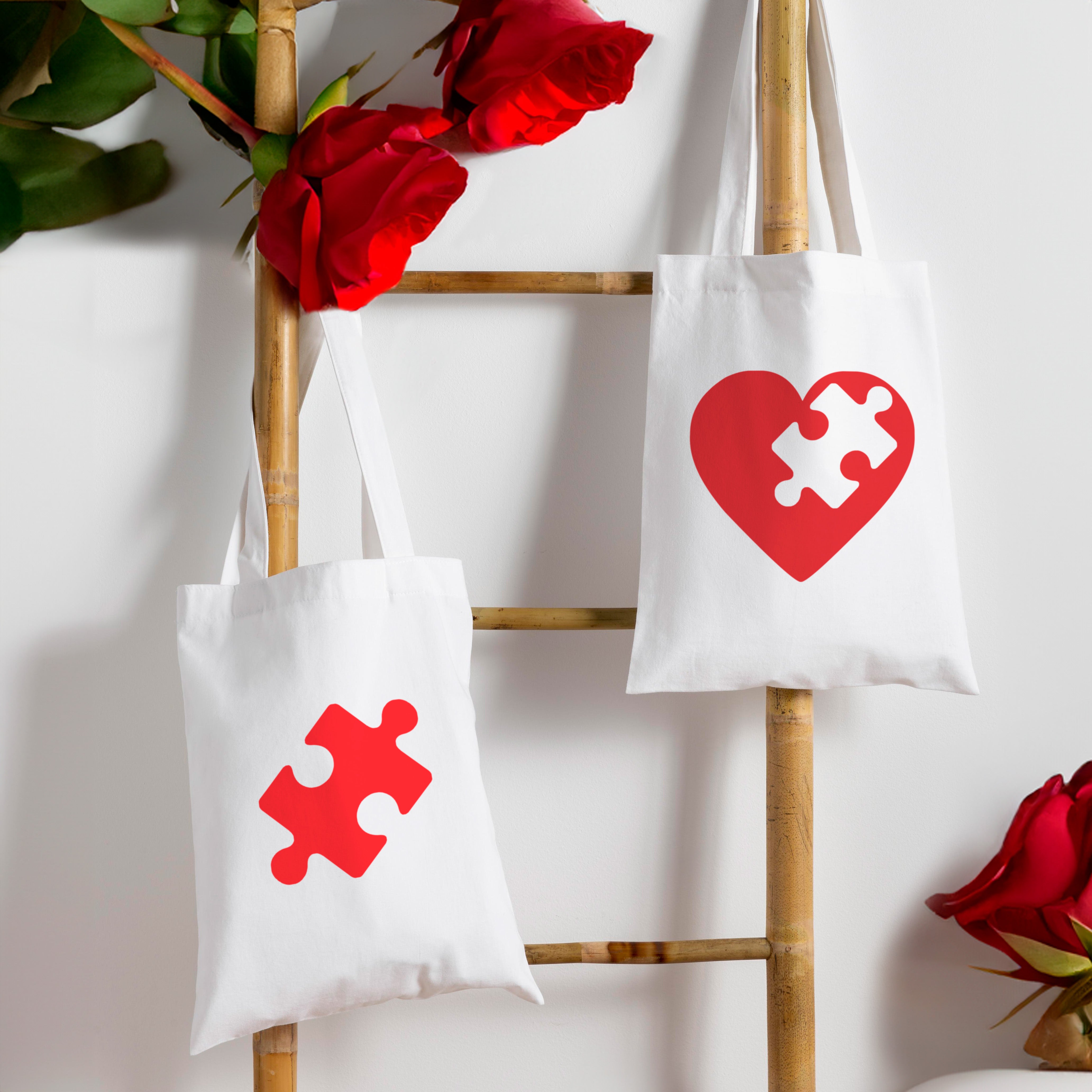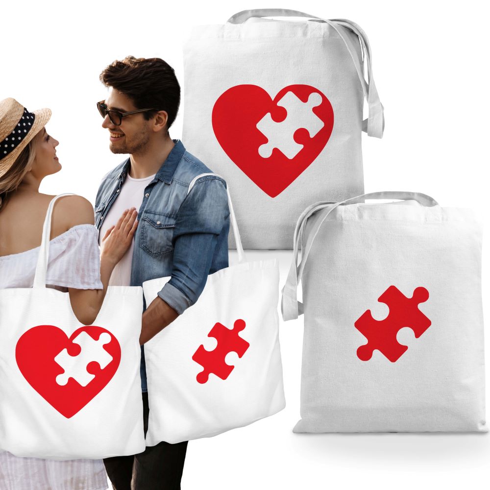 Dwie torby bawełniane z nadrukiem. Idealny modowy akcent dla par i oryginalny prezent na Walentynki.