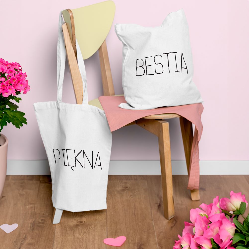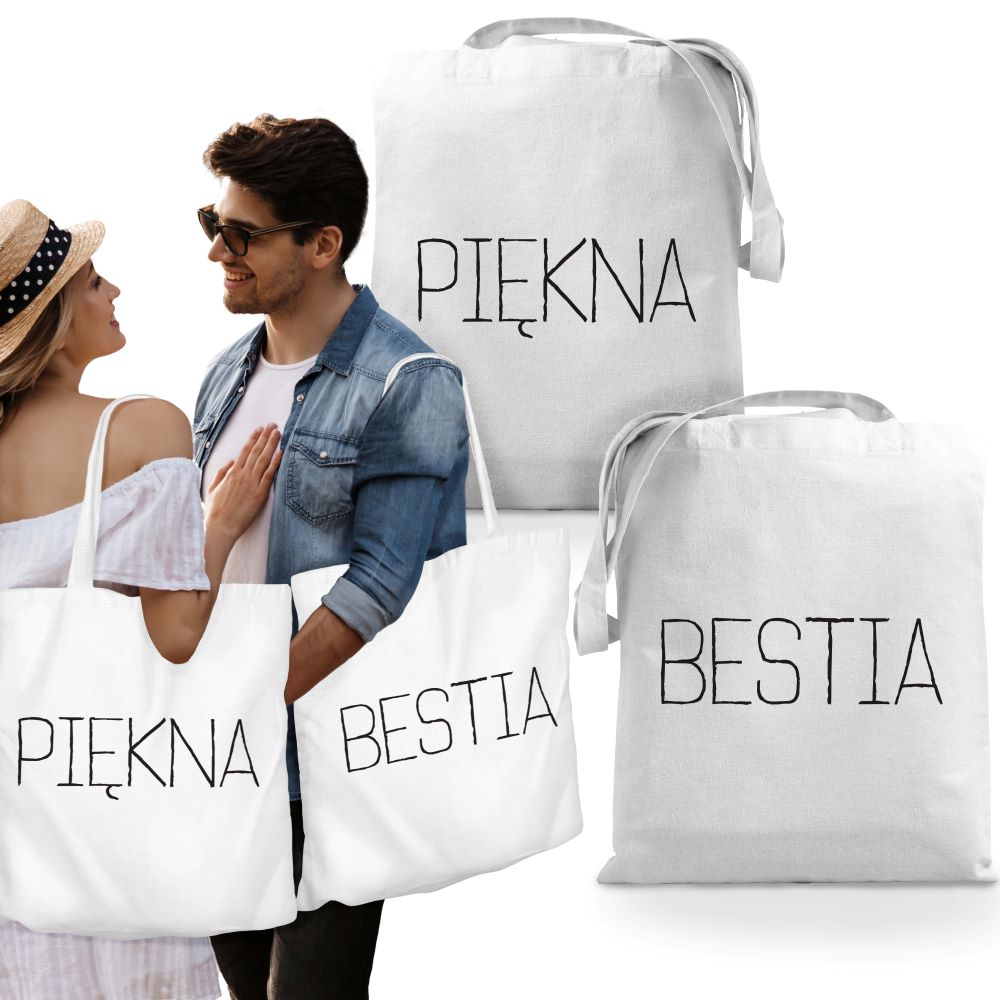 Dwie torby bawełniane z nadrukiem. Idealny modowy akcent dla par i oryginalny prezent na Walentynki.