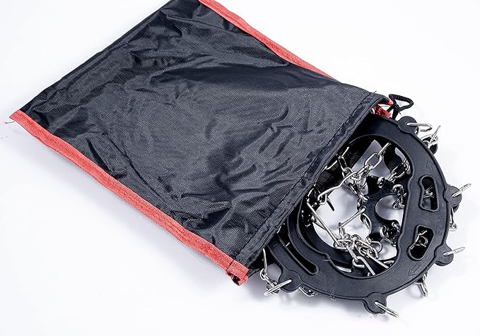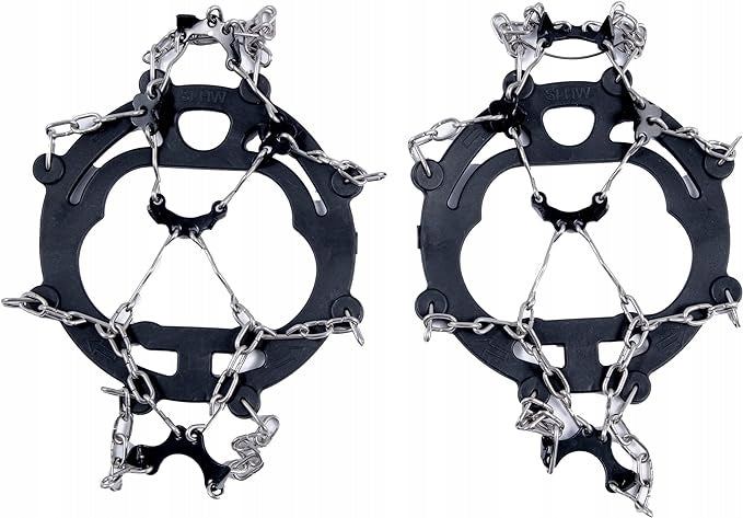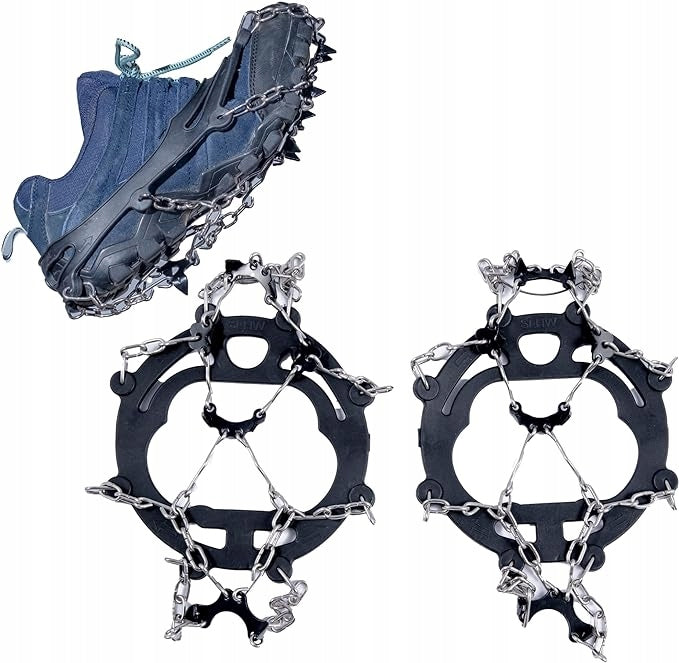 - Mocne i bezpieczne nakładki antypoślizgowe - Raczki posiadają 8 wysokiej jakości kolców oraz mocny system łańcuchów.