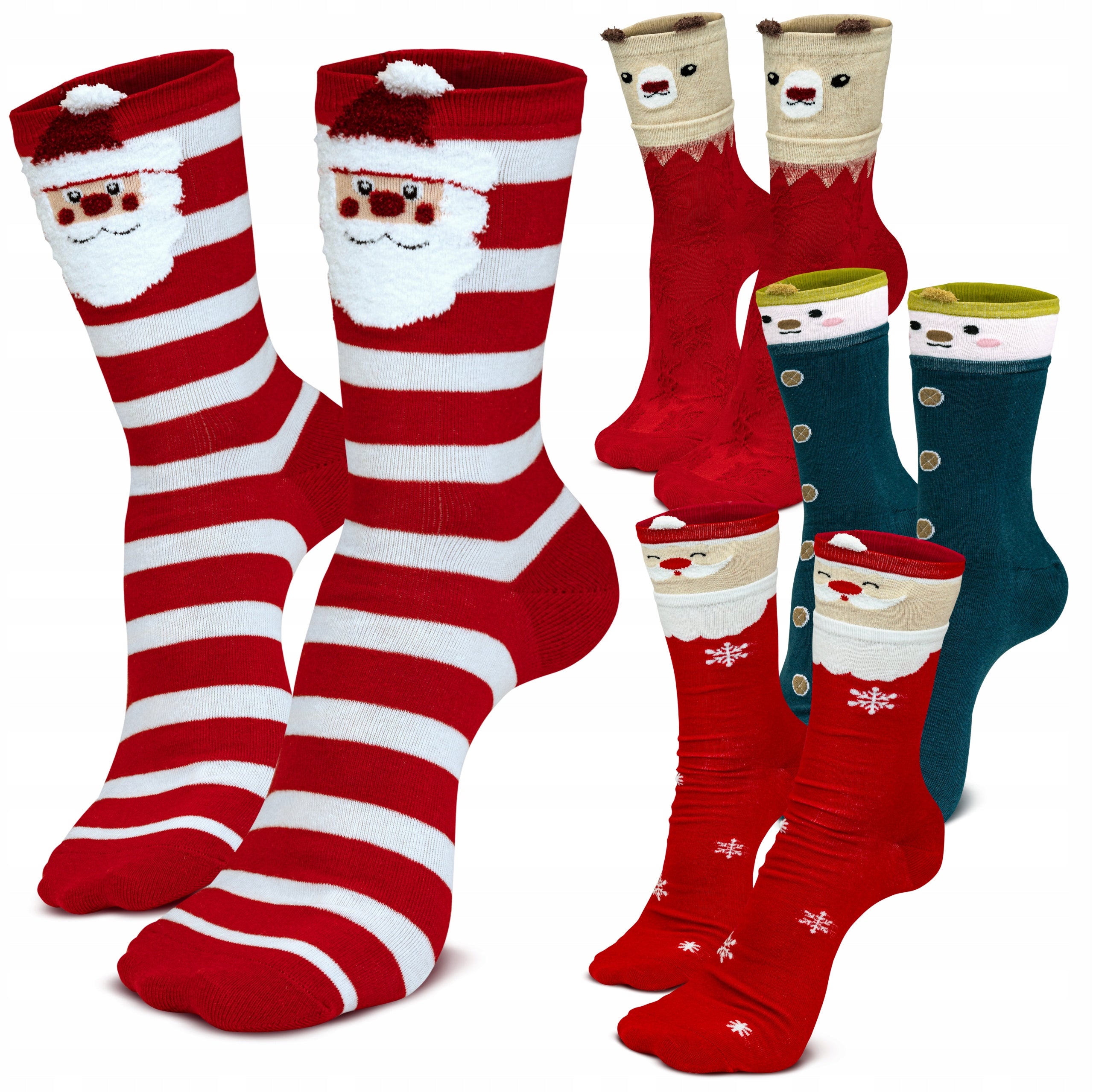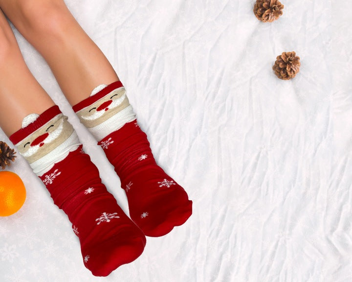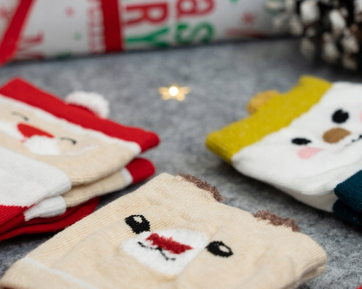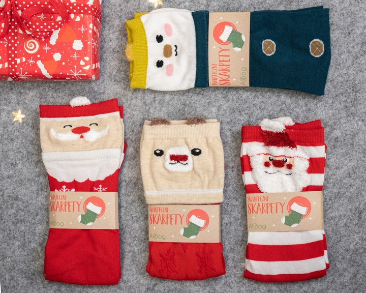 Wysokiej jakości materiał: Skarpetki są wykonane z miękkiego i ciepłego materiału, który jest przyjemny w dotyku i zapewnia komfort podczas noszenia. Zostały ozdobione kolorowymi oraz uroczymi wzorami świątecznymi. To idealne skarpetki na chłodniejsze dni grudnia.