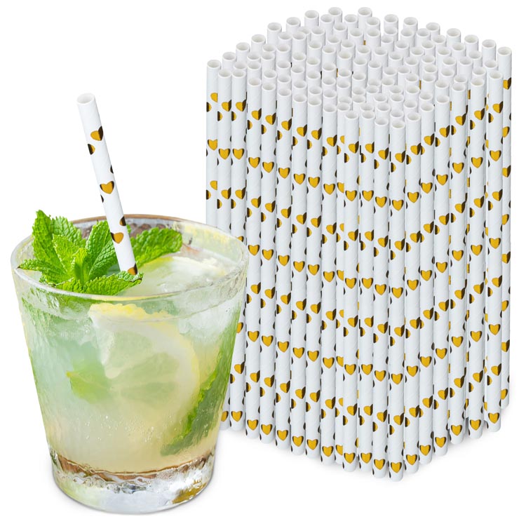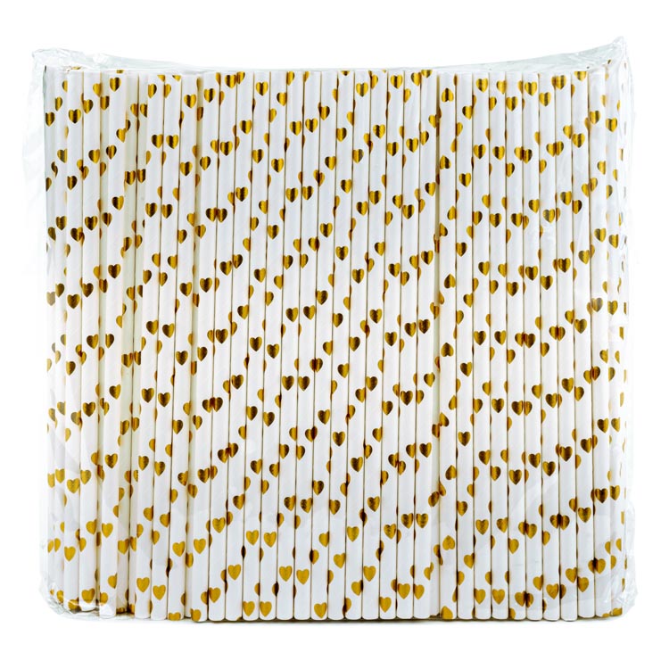 Słomki papierowe BŁYSZCZĄCE SERCA ZŁOTE 20cm ekologiczne 250szt