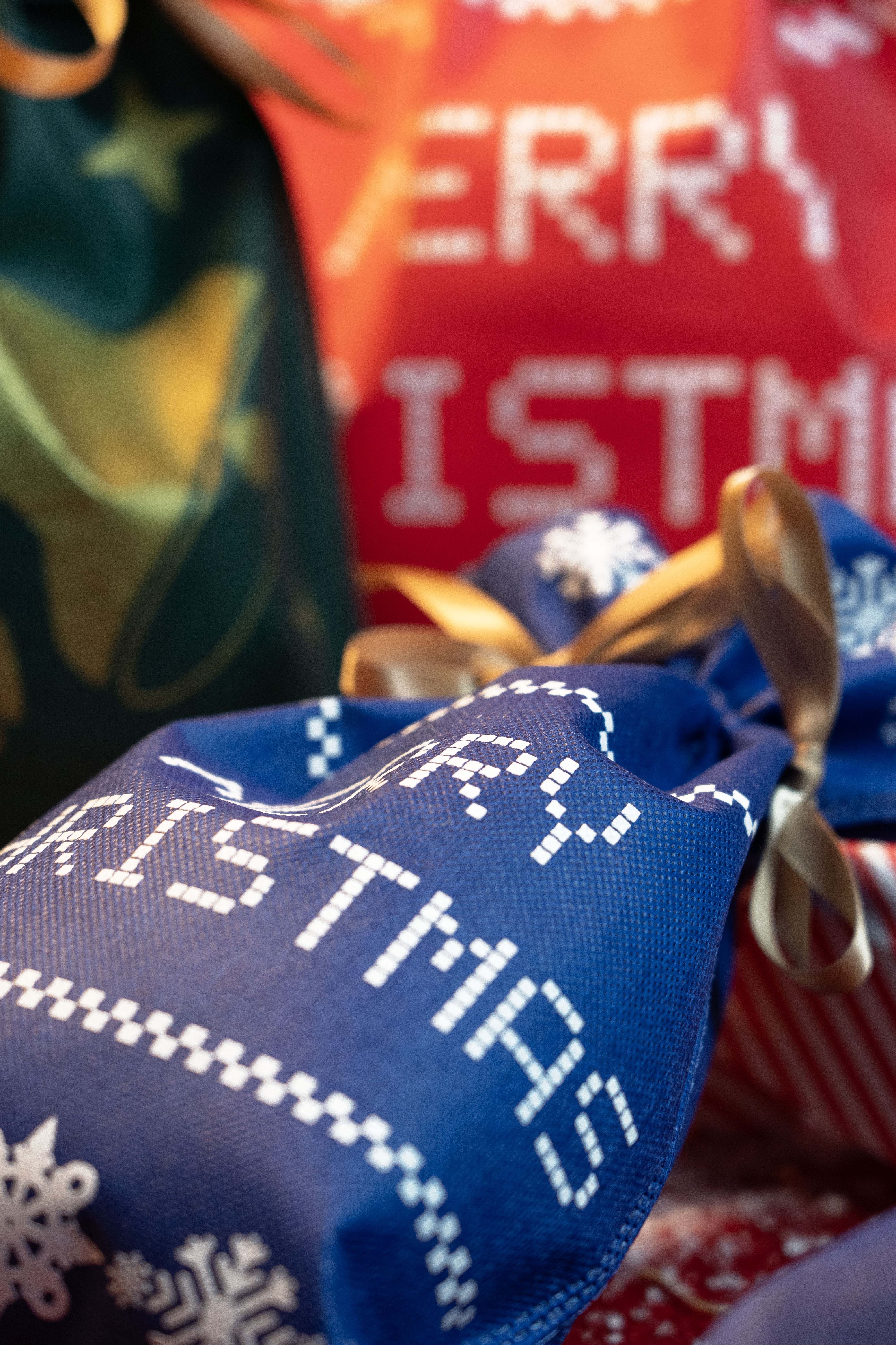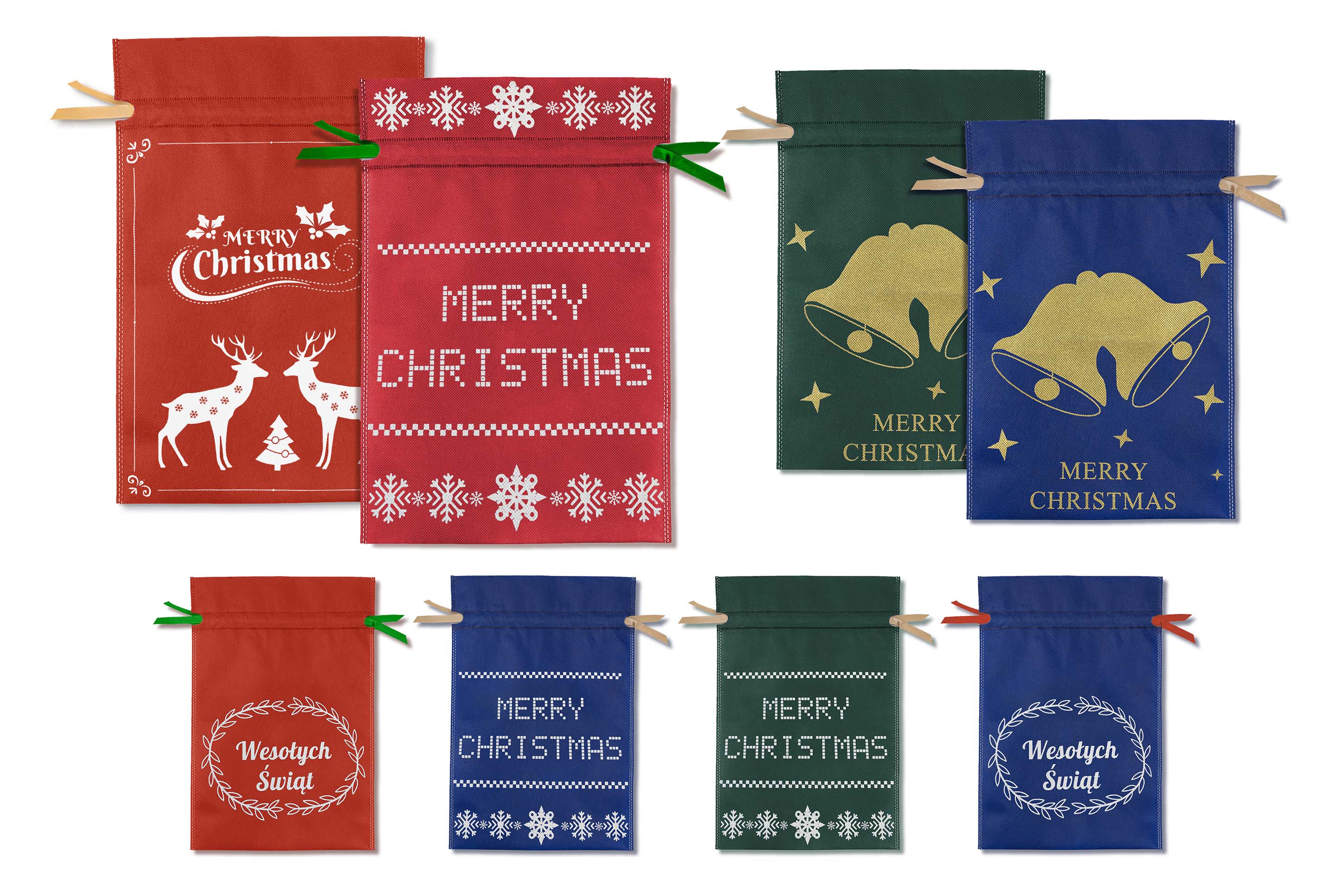 Woreczki wigofilowe Merry Christmas wykonane z trwałych materiałów i ozdobione świątecznymi motywami, takimi jak Merry Christmas, Wesołych Świąt, Dzwonki i Renifery, będą doskonałym dodatkiem do każdego upominku. Zawiązywane dekoracyjnymi wstążkami, dodadzą magii każdej chwili przy świątecznej choince.