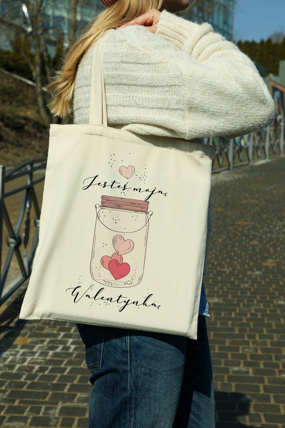 Torba bawełniana ecru JESTEŚ MOJĄ WALENTYNKĄ
