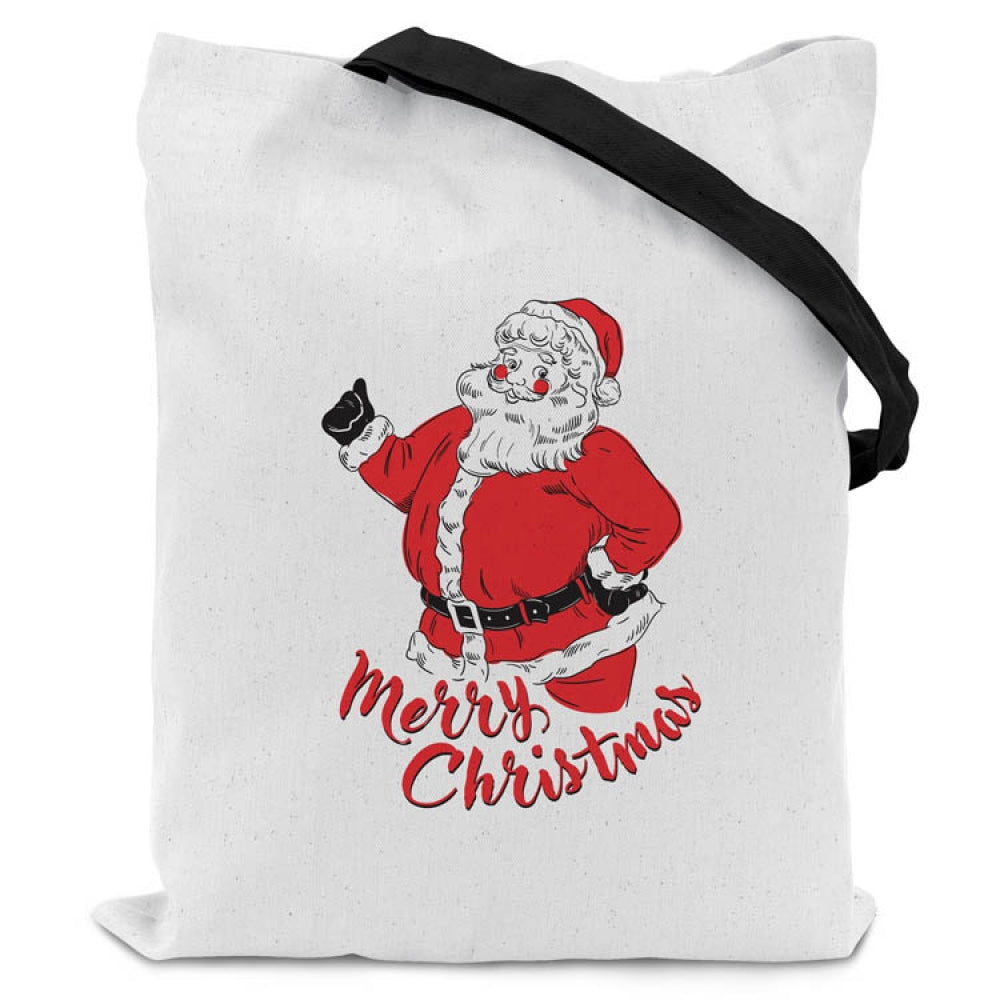 Torba bawełniana świąteczna MIKOŁAJ czarny uchwyt