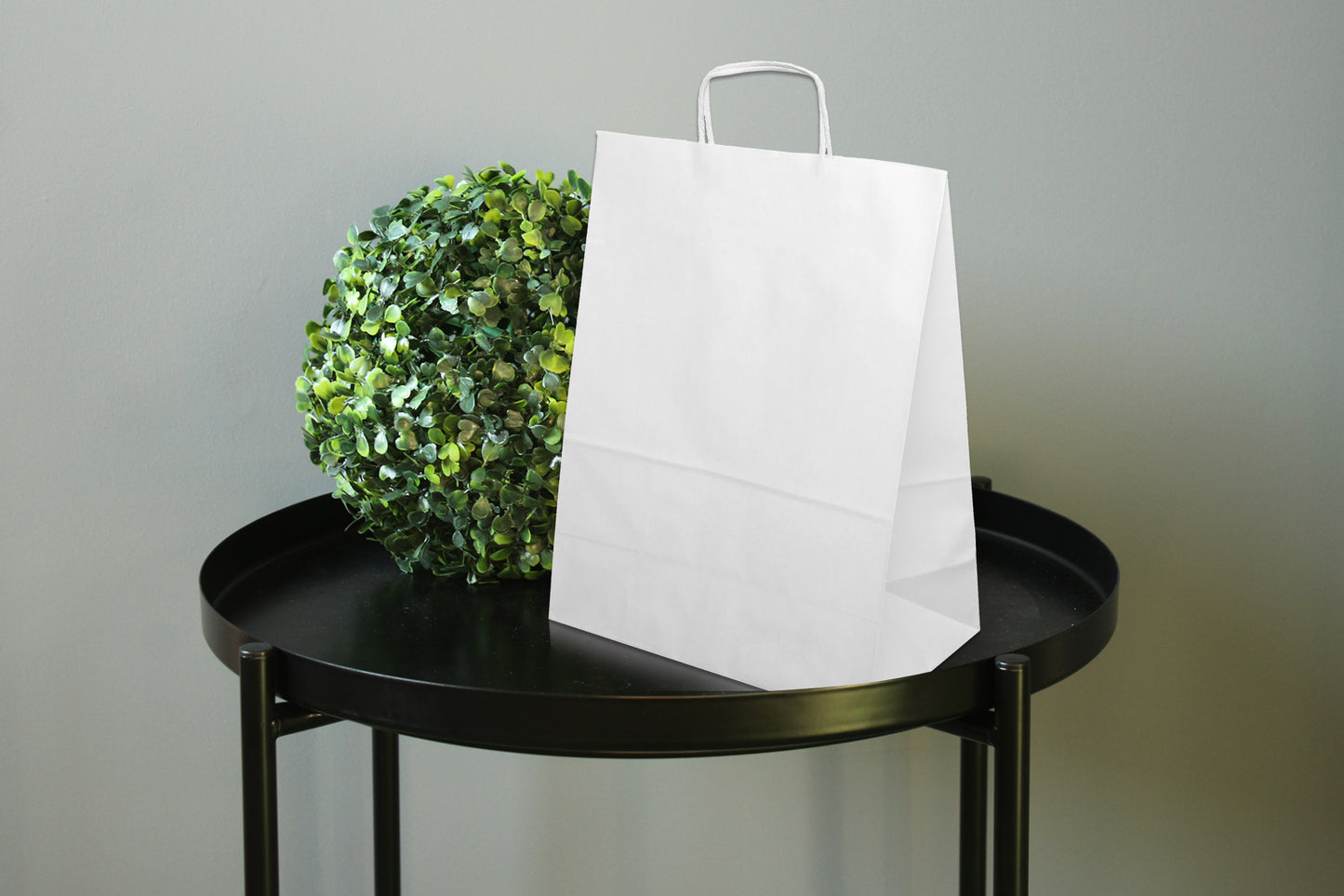 Torba papierowa z uchwytem skręcanym 300x170x425mm Biała