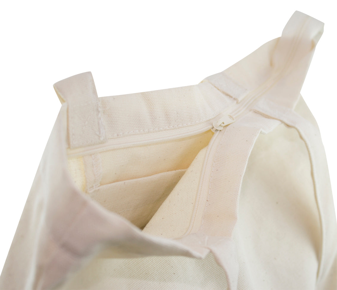 Torba materiałowa z siatką sprawdzi się jako torba na zakupy do pracy czy na uczelnię.