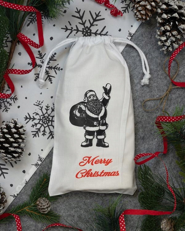 Woreczek bawełniany świąteczny 15x20cm BIAŁY MIKOŁAJ MERRY Jest zamówiony z opóźnieniem i zostanie wysłany, gdy tylko pojawi się ponownie w magazynie.
