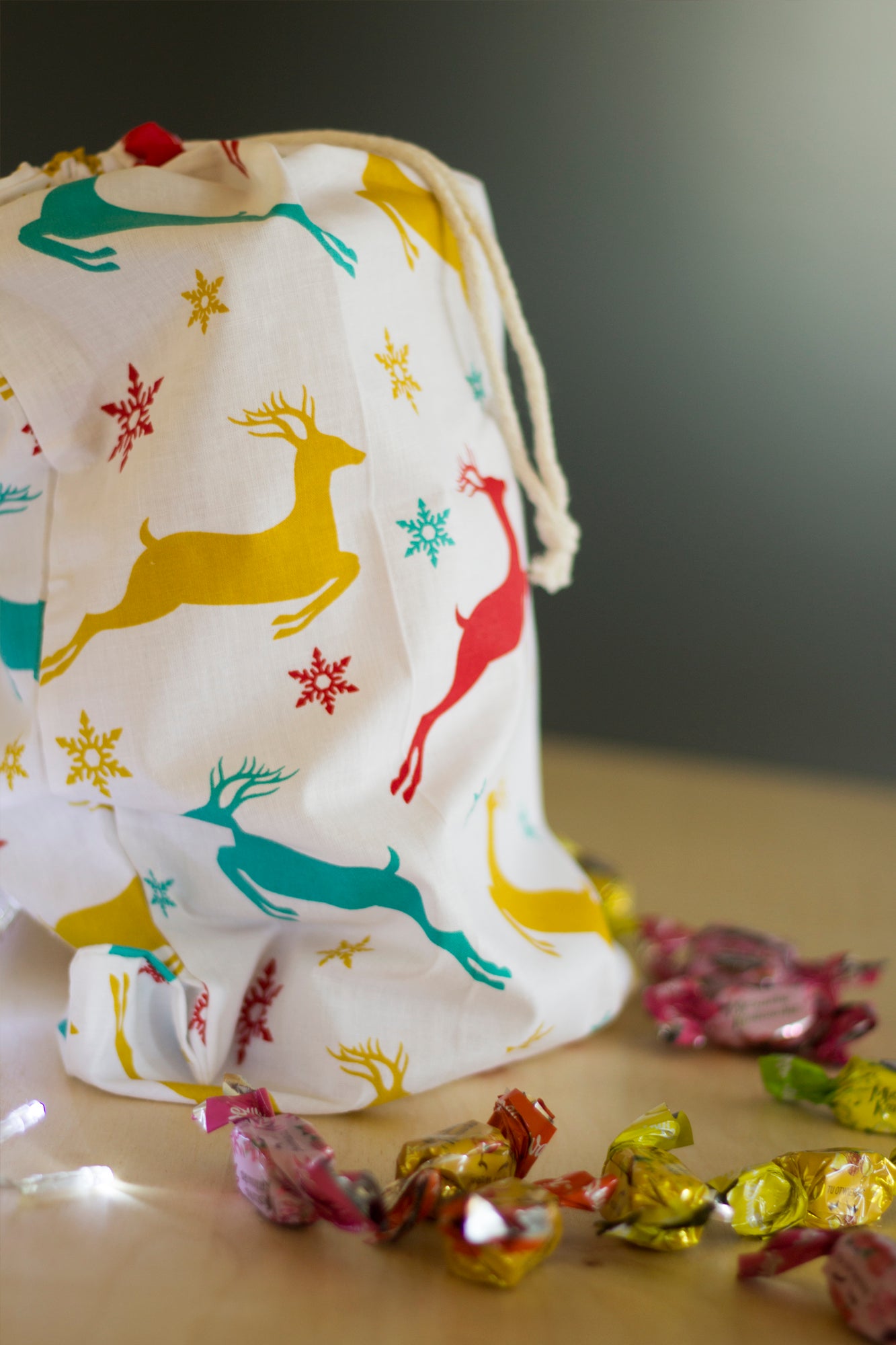 Woreczek bawełniany 30x45 cm Kolorowe Renifery Jest zamówiony z opóźnieniem i zostanie wysłany, gdy tylko pojawi się ponownie w magazynie.