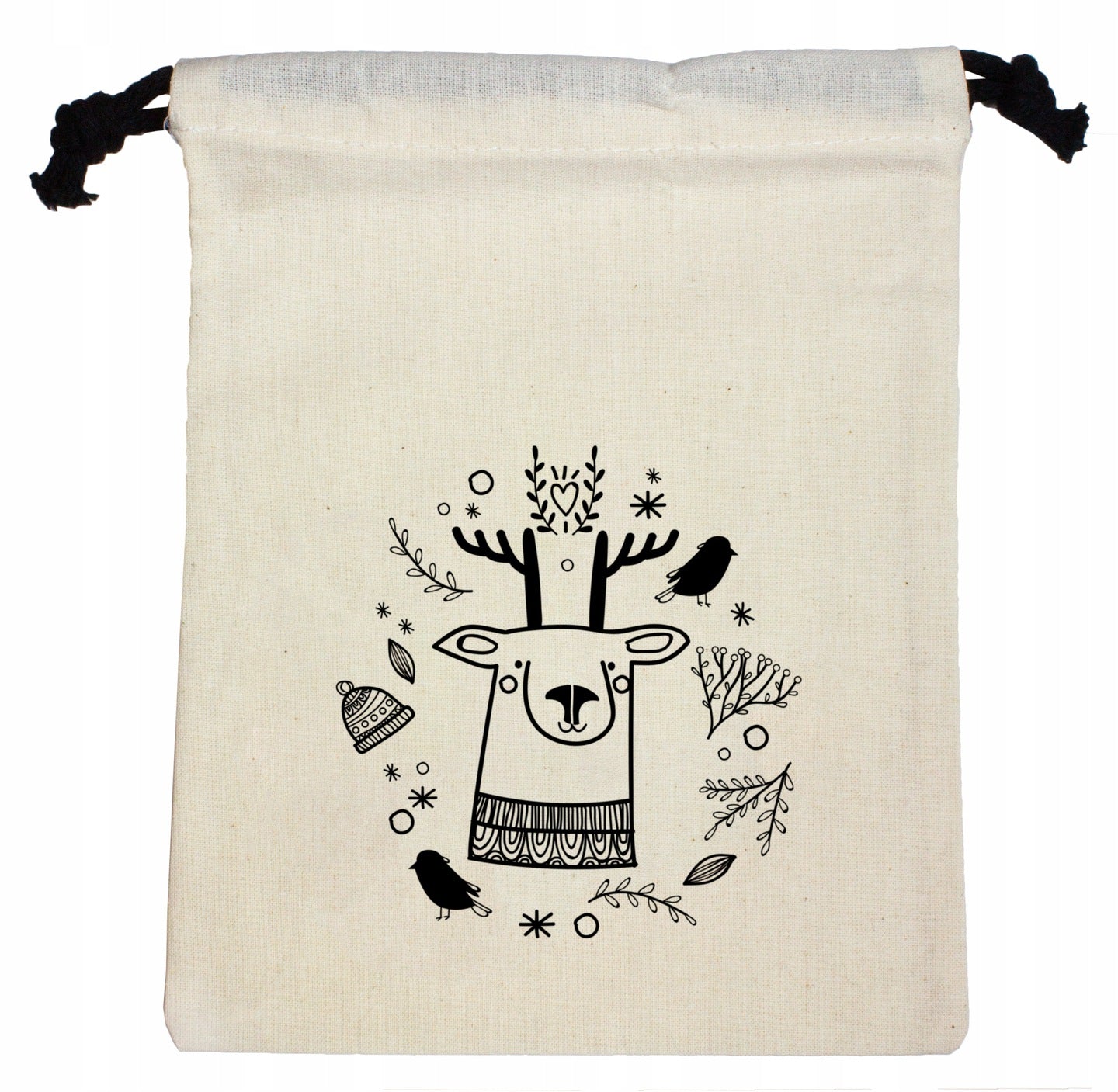 Woreczek RENIFER 15x20cm ECRU CZARNY SZNUREK