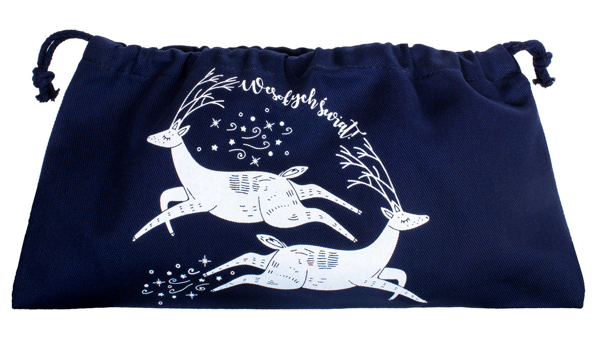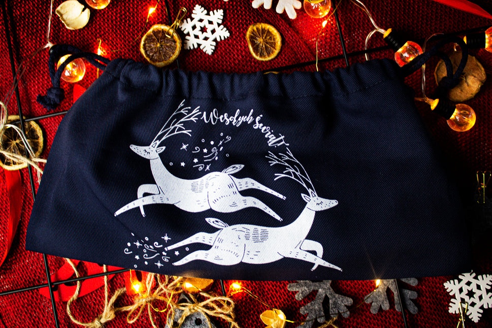 Worki bawełniane poprzez swój unikalny wzór nadają się idealnie w okresie świąt Bożego Narodzenia, może nam posłużyć np. jako pakunek na prezent lub po prostu do użytku własnego.