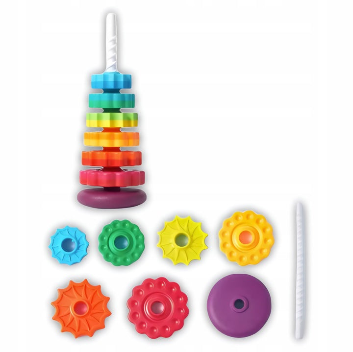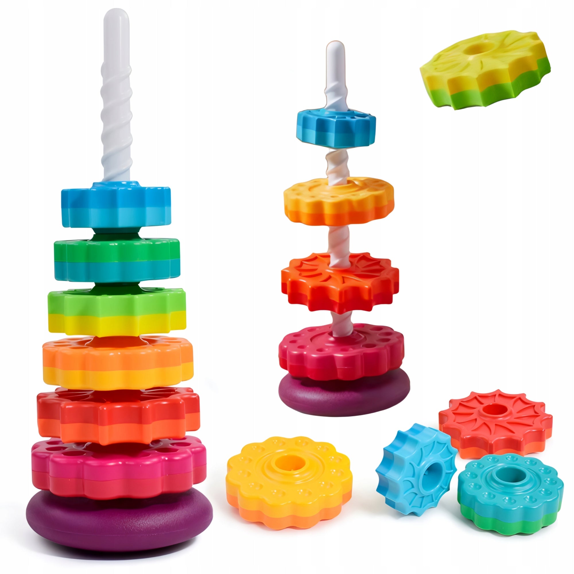 Zakręcona tęczowa piramida edukacyjna z gwiazdkowymi krążkami i słupkiem z gwintem. Postaw na zabawkę, która rozwija motorykę, sekwencje i kreatywność. Dodaj do koszyka i podaruj dziecku mądrą, angażującą zabawę każdego dnia!