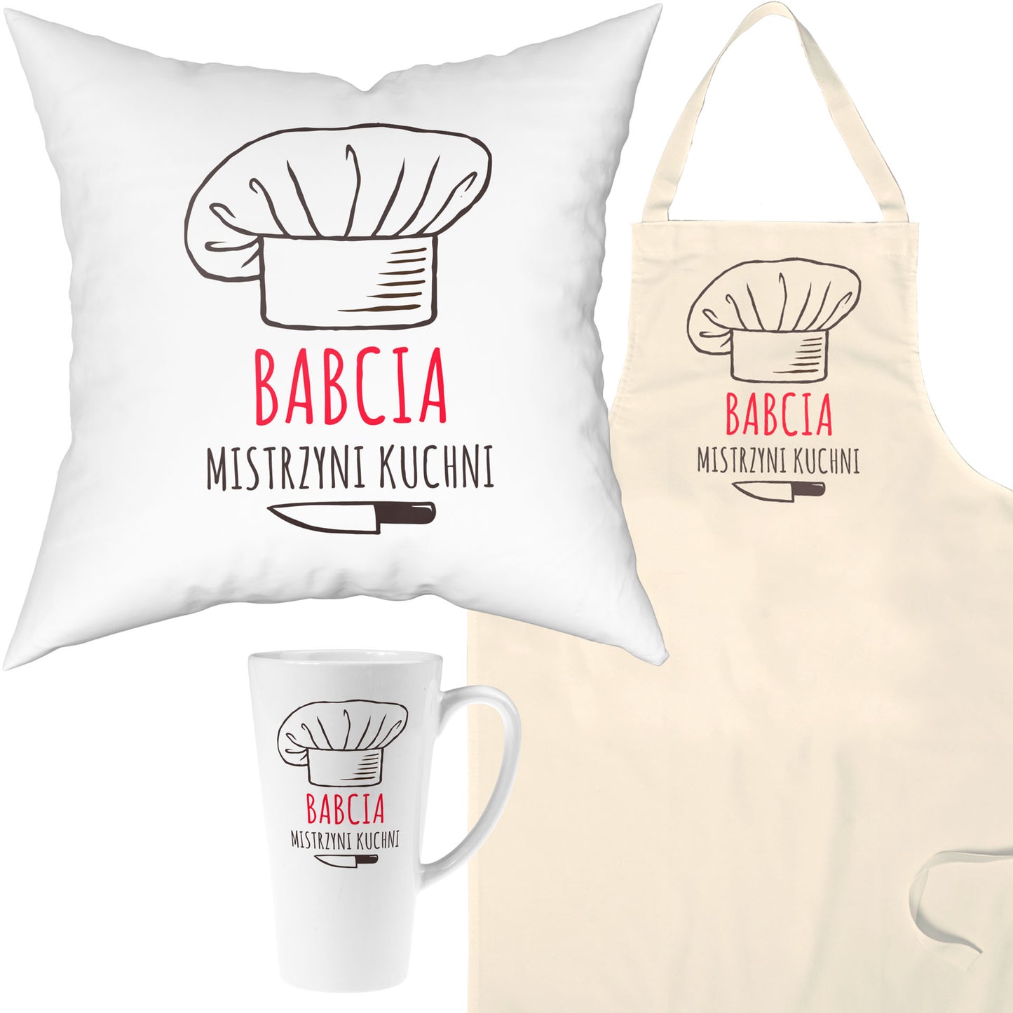 Zestaw Fartuch,Kubek,Poduszka Babcia Mistrzyni Kuchni Prezent na Dzień Babci
