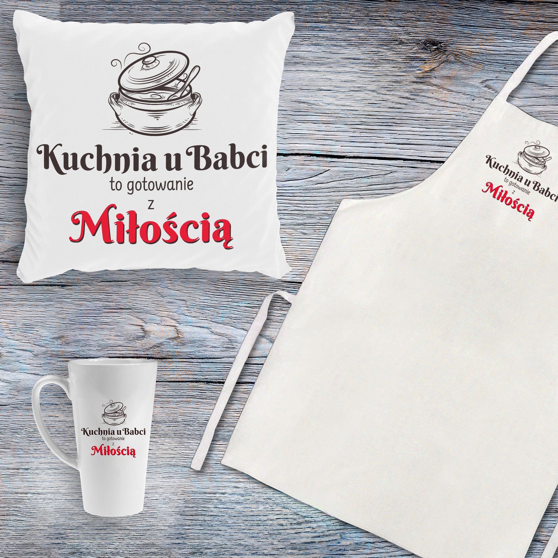 Zestaw Fartuch,Kubek,Poduszka Kuchnia u Babci Prezent na Dzień Babci