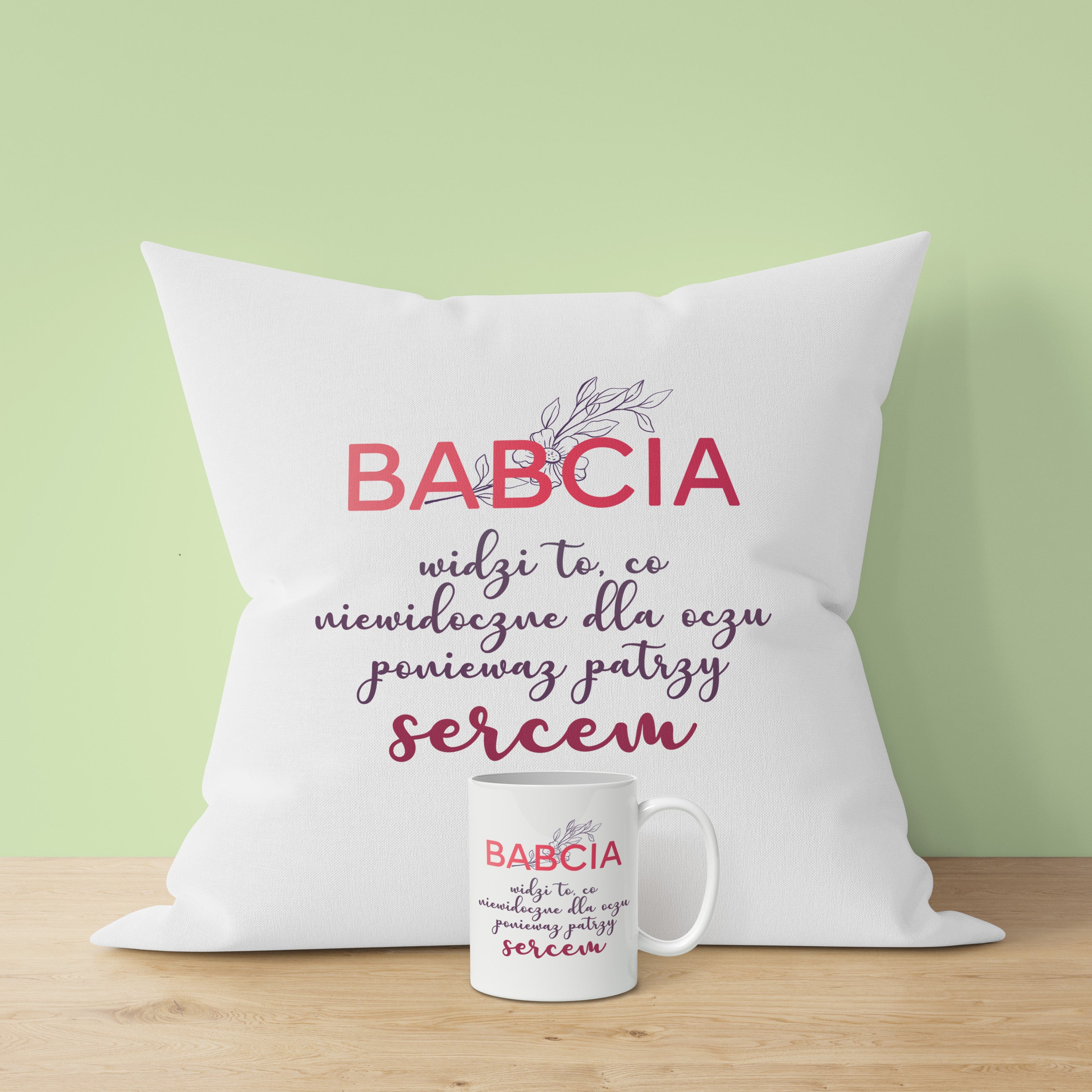 Zestaw Poduszka Kubek Babcia patrzy sercem Dziadek patrzy sercem Prezent na Dzień Babci i Dziadka