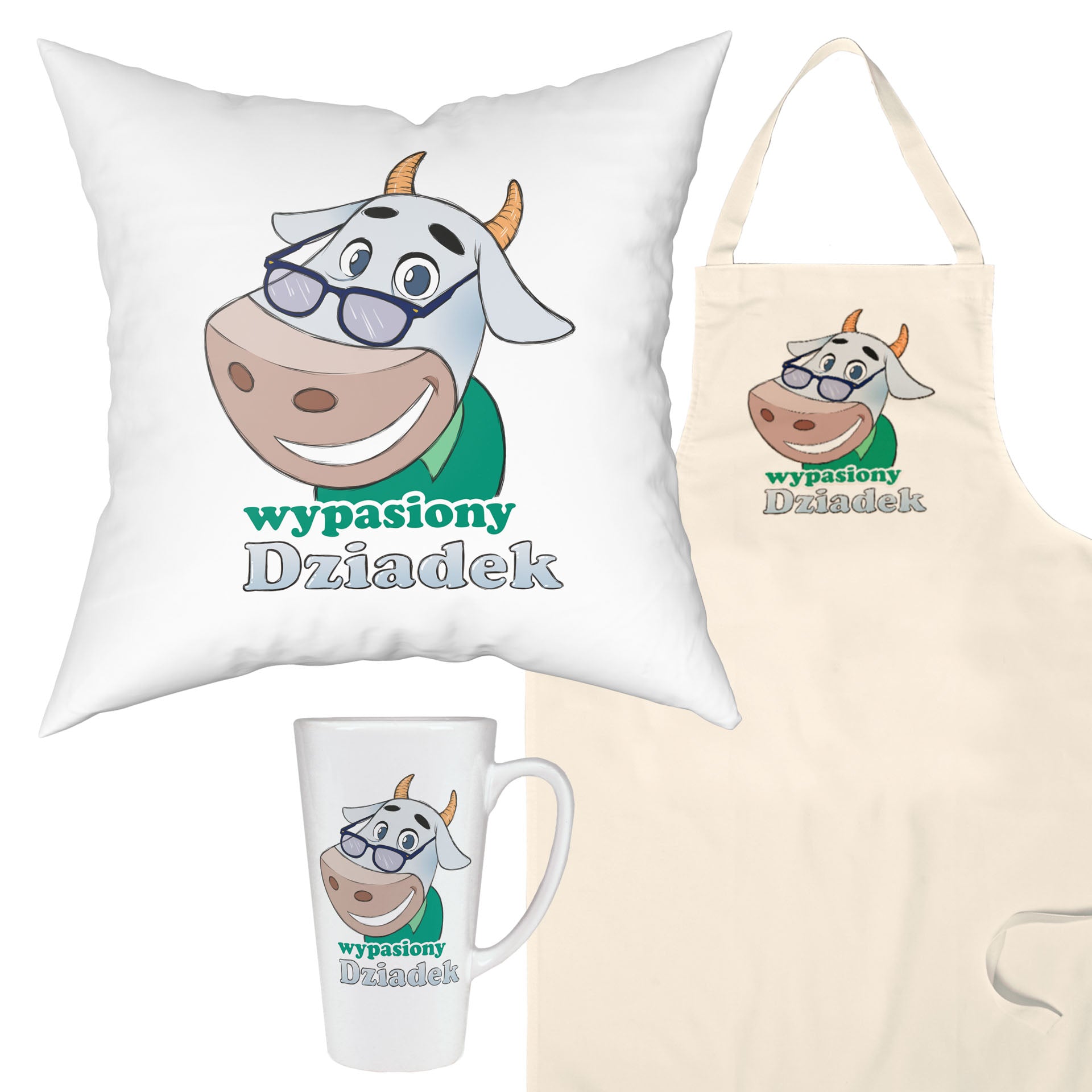 Zestaw Fartuch,Kubek,Poduszka Wypasiony Dziadek Prezent na Dzień Dziadka