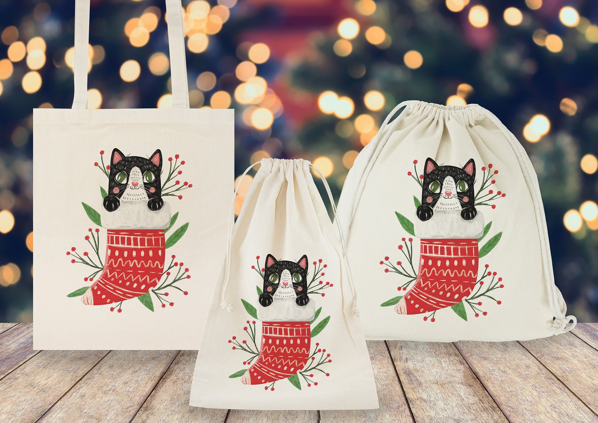 Zestaw świąteczny WOREK PLECAK TORBA kot