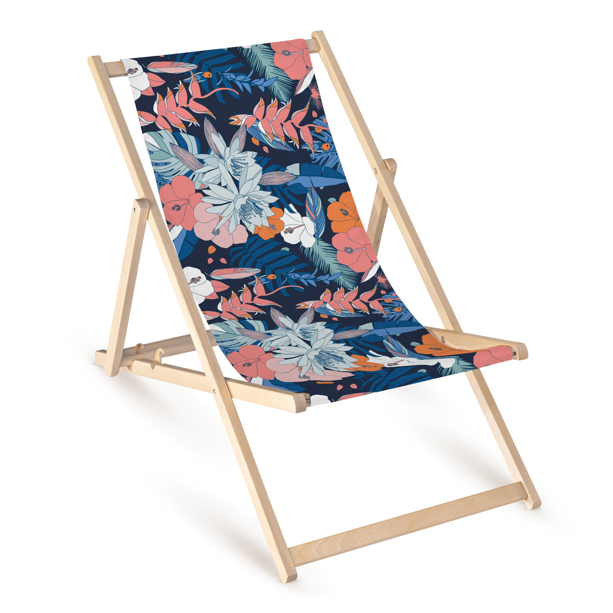Leżak drewniany z nadrukiem TROPIKALNY GRANATOWO RÓŻOWY