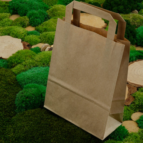 Sacii de hârtie cu mânere plate sunt biodegradabili, ceea ce înseamnă că se descompun natural și nu lasă substanțe dăunătoare. În plus, hârtia din care sunt fabricați poate fi reciclată și utilizată pentru producerea de noi produse, reducând astfel consumul de resurse naturale.