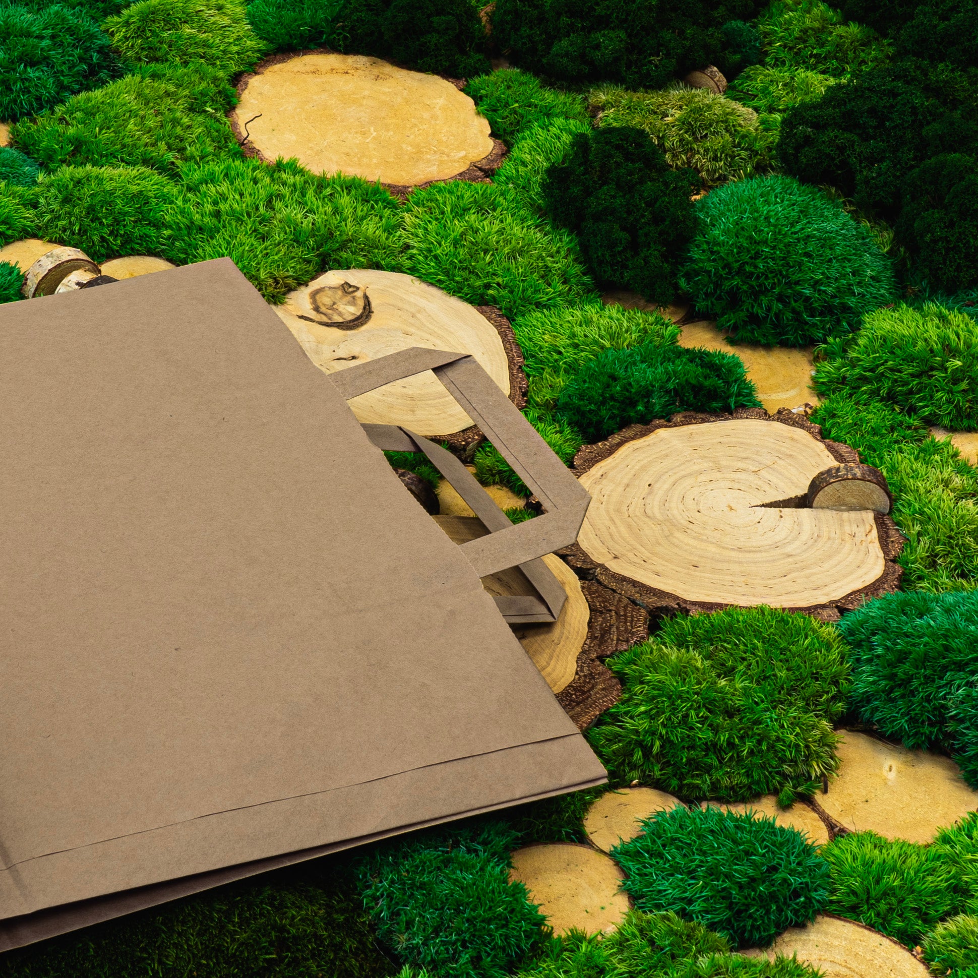 Alegere ecologică: Pungile noastre de hârtie sunt prietenoase cu mediul. Sunt fabricate din hârtie durabilă și biodegradabilă, ceea ce înseamnă că producția și eliminarea lor sunt mai prietenoase cu planeta decât ambalajele din plastic.