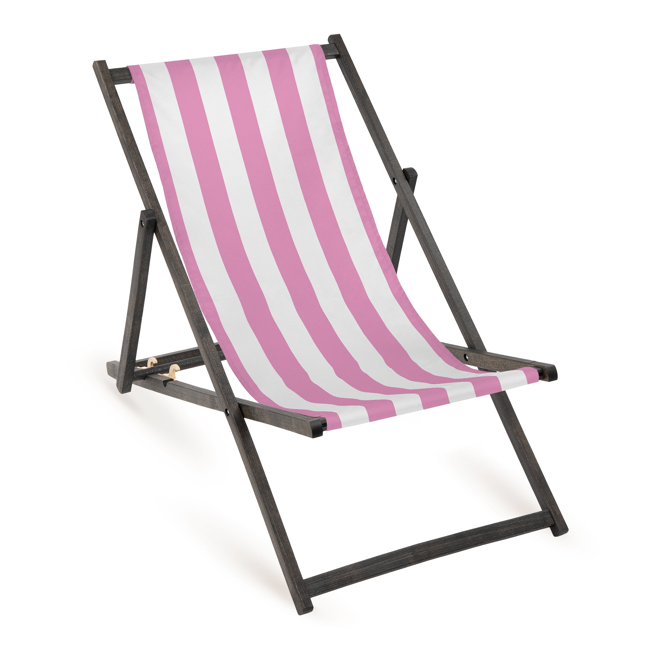 Pariezi pe sezlong de plaja din lemn cu imprimeu dungiși creează-ți propria zonă de relaxare, confortabilă, elegantă și pregătită pentru orice soare de vară.