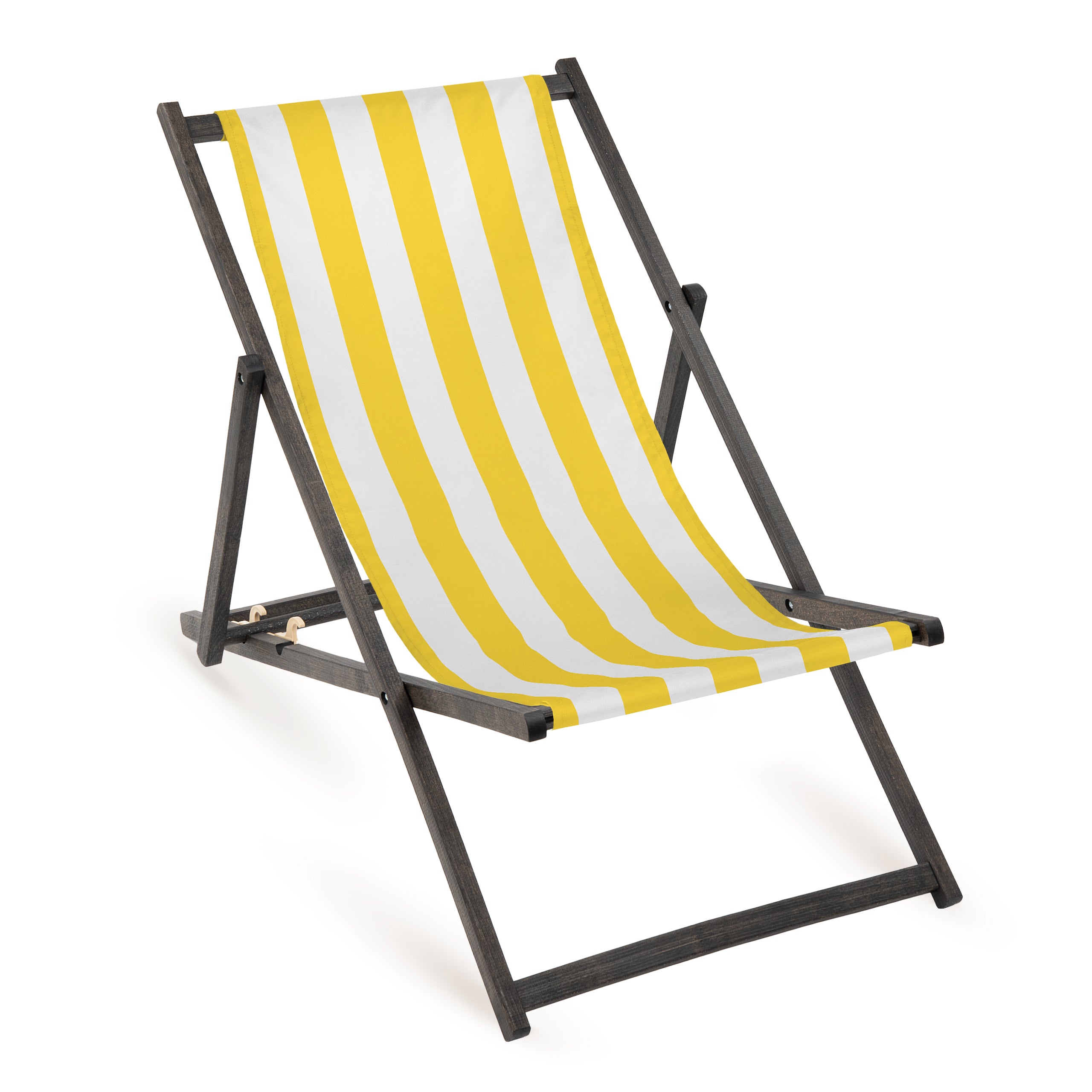 Sezlong din lemn, cadru negru cu dungi albe - Diverse culori - Żółty Acesta este comandat cu întârziere și va fi expediat de îndată ce va fi din nou în stoc.