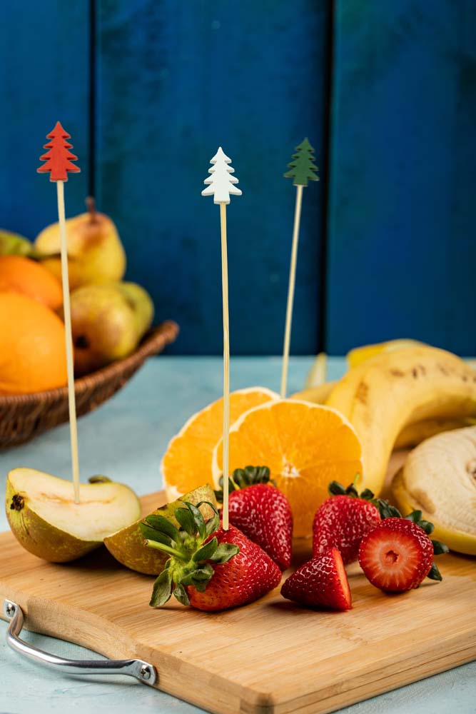 Calitate superioară: Scobitorile decorative sunt realizate manual din bambus de înaltă calitate și au finisaje cu modele festive. Sunt sigure pentru contactul cu alimentele, dar pot fi utilizate și pentru decor.
