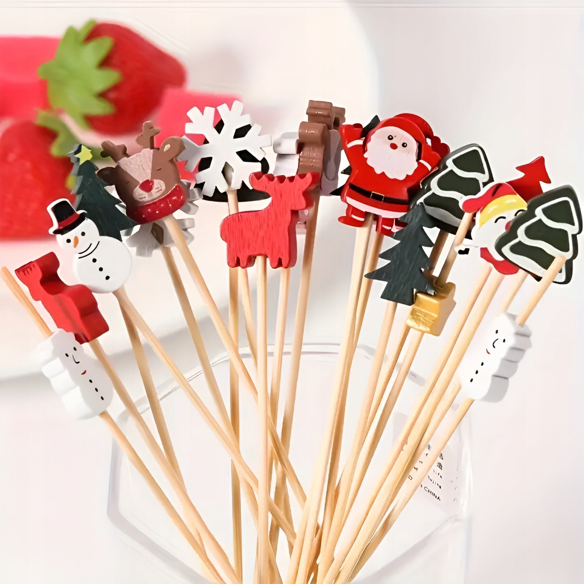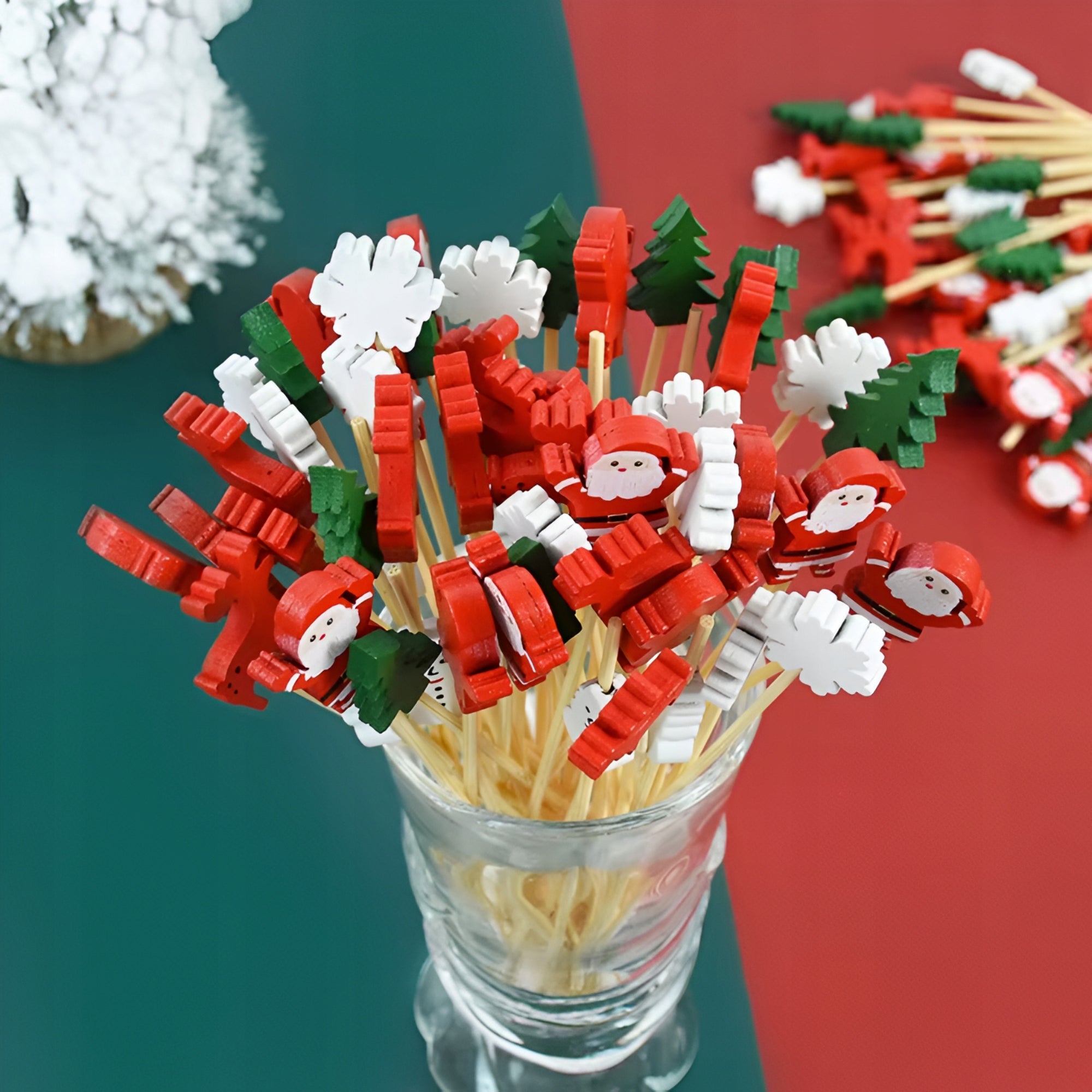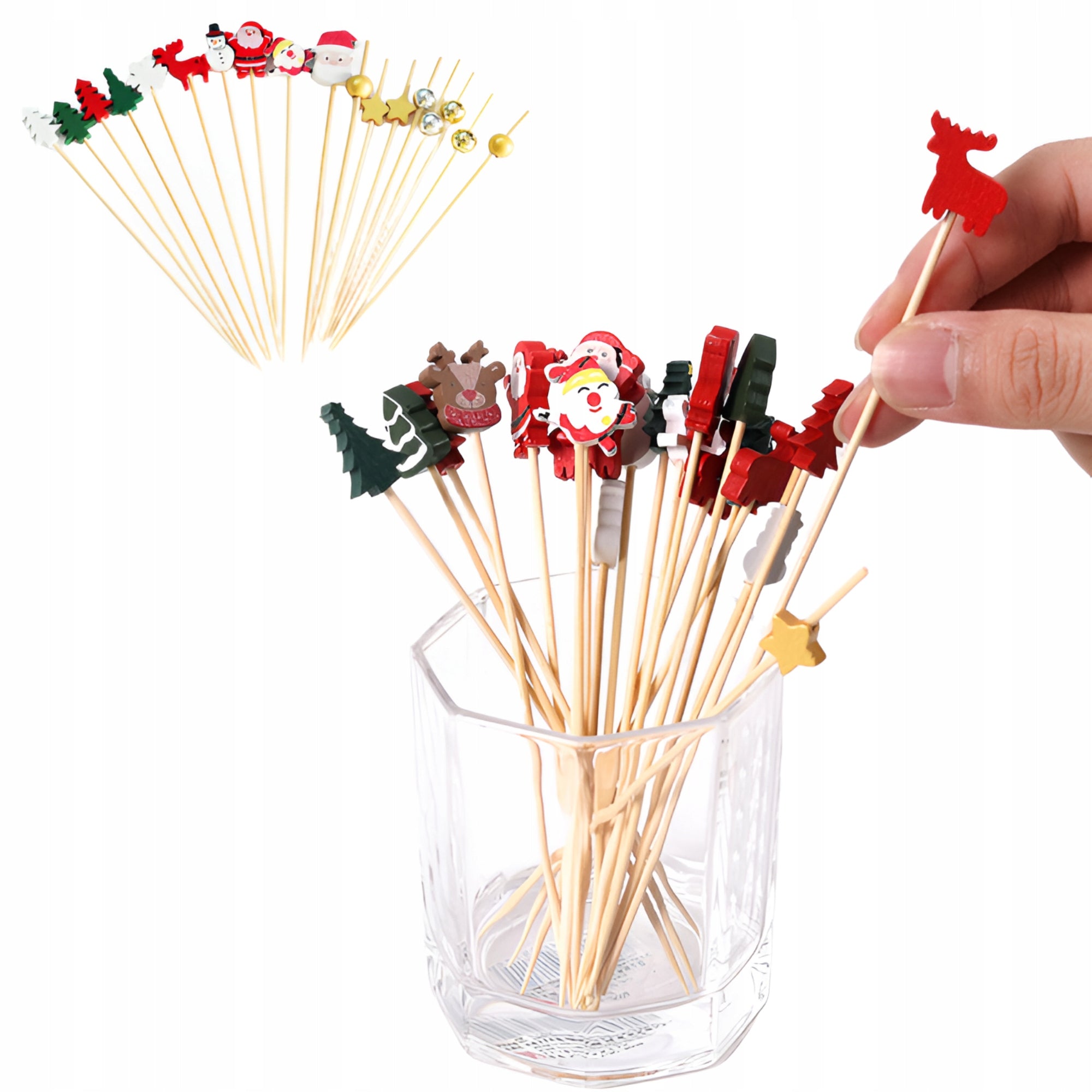 Wybierz drewniane wykałaczki z motywem świątecznym 50szt. do koreczków, muffinek, deserów i drinków. Podkreśl klimat Bożego Narodzenia bez wysiłku stwórz efektowną, spójną aranżację stołu!