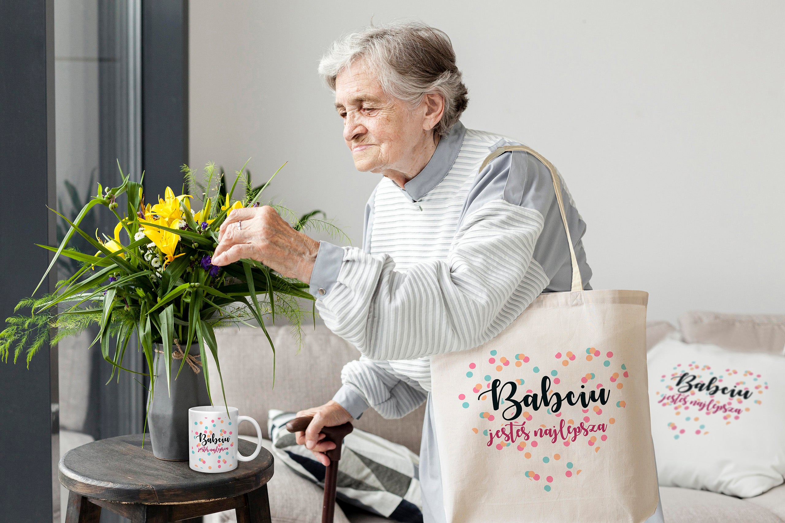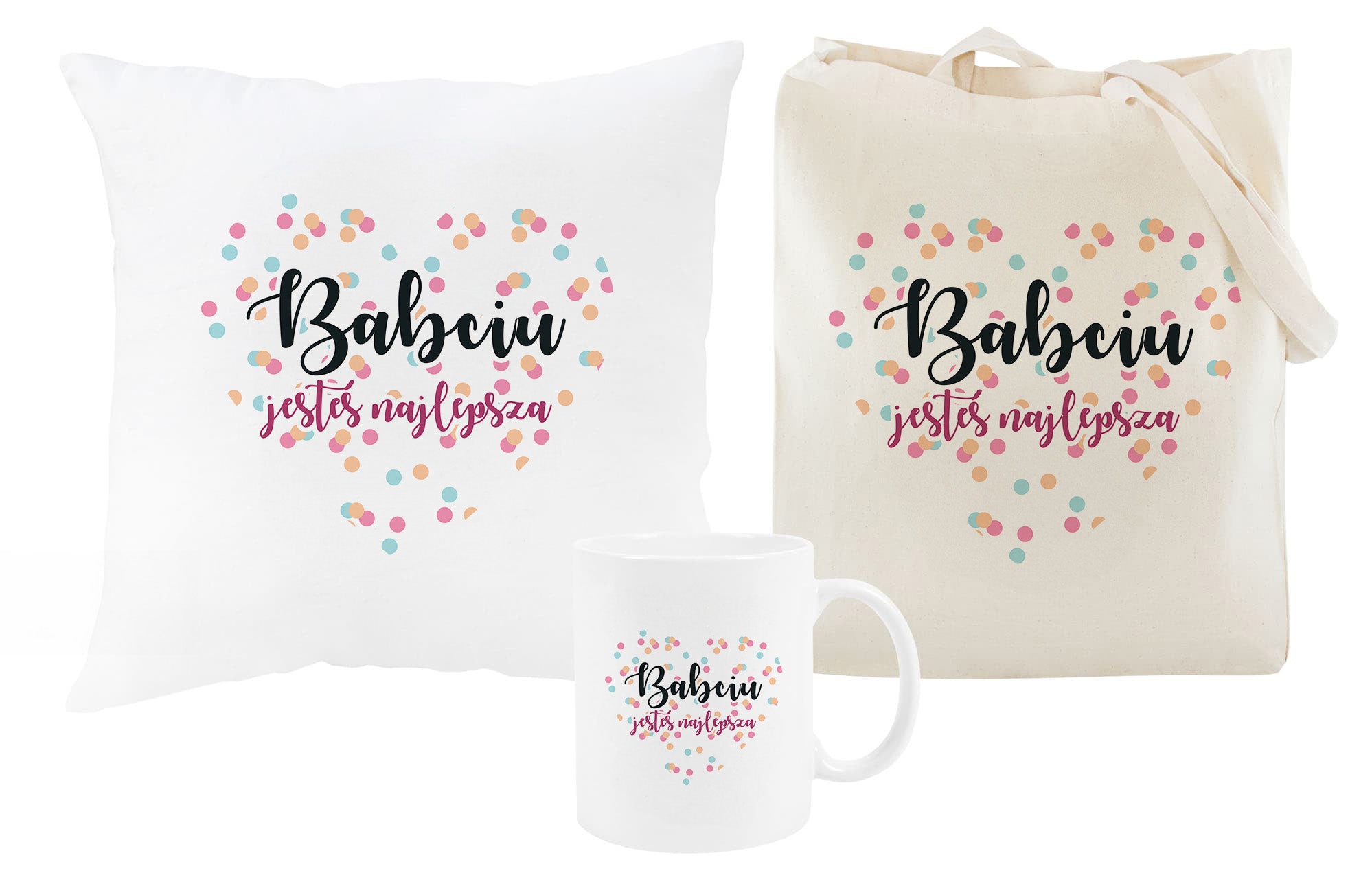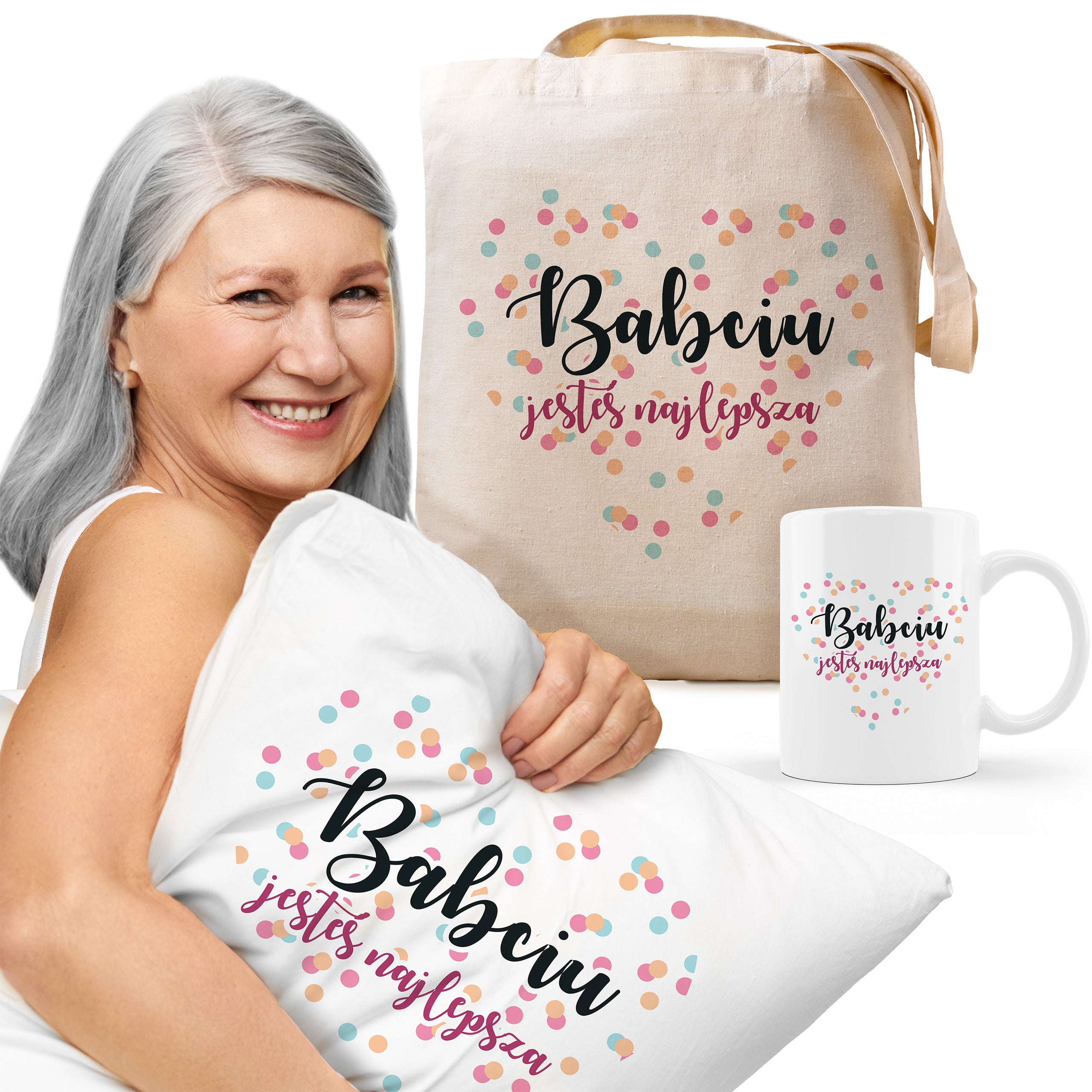 Zestaw Torba Bawełniana,Kubek,Poduszka Babciu jesteś Najlepsza Prezent na Dzień Babci