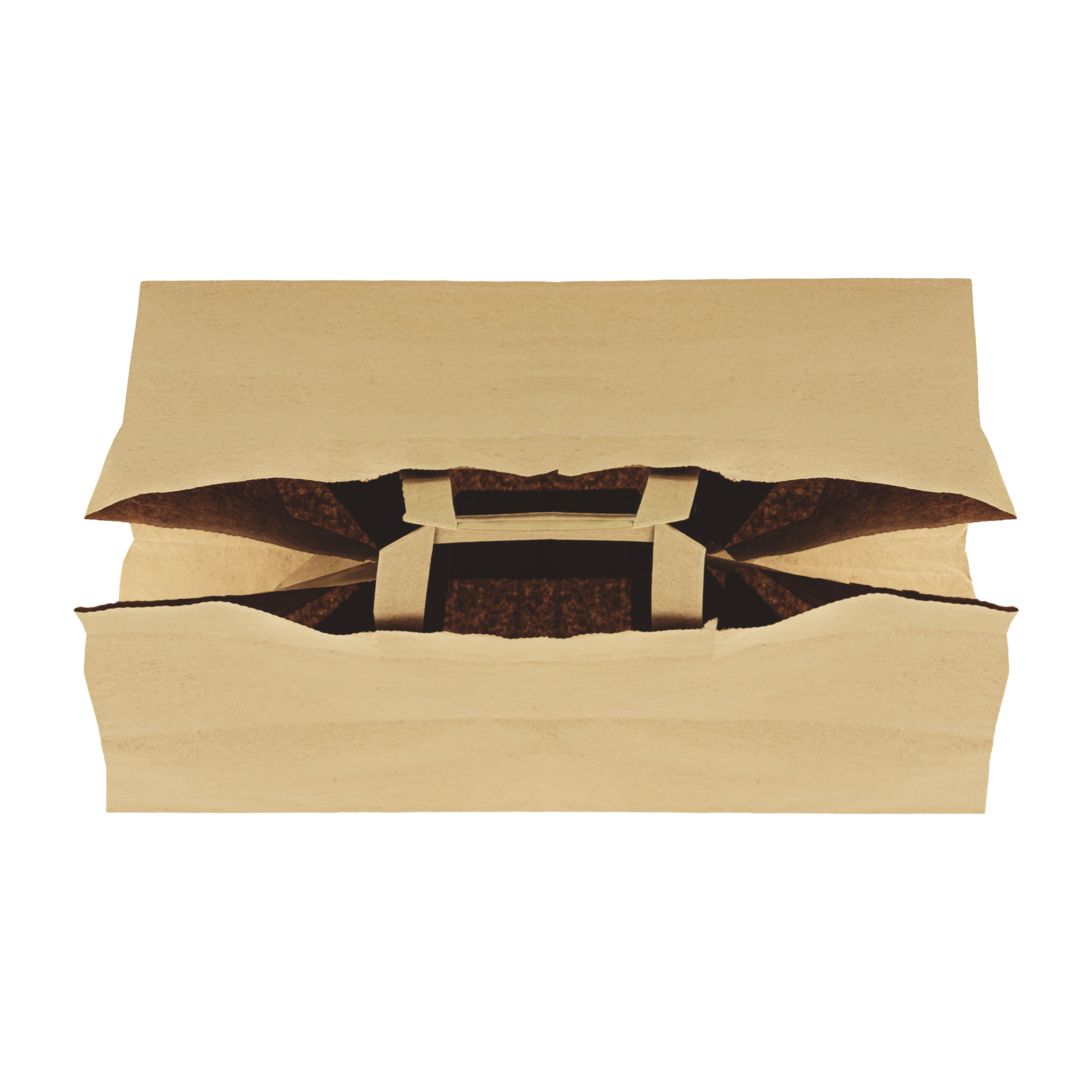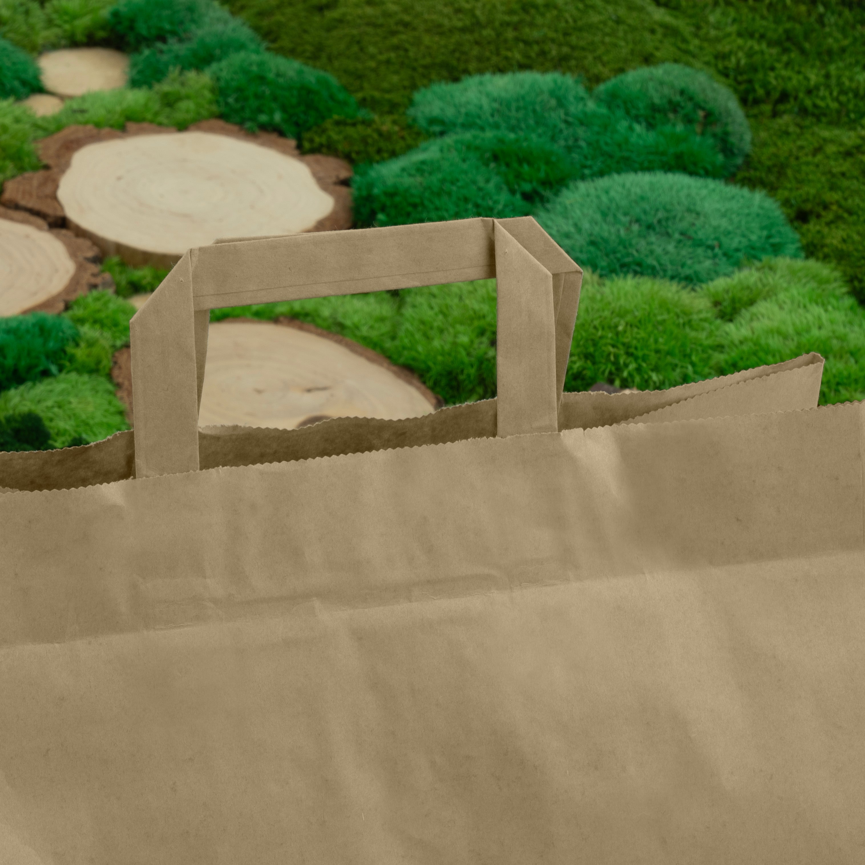 Pungă de hârtie 320x220x245mm catering cu mâner plat - BRONZ Acesta este comandat cu întârziere și va fi expediat de îndată ce va fi din nou în stoc.