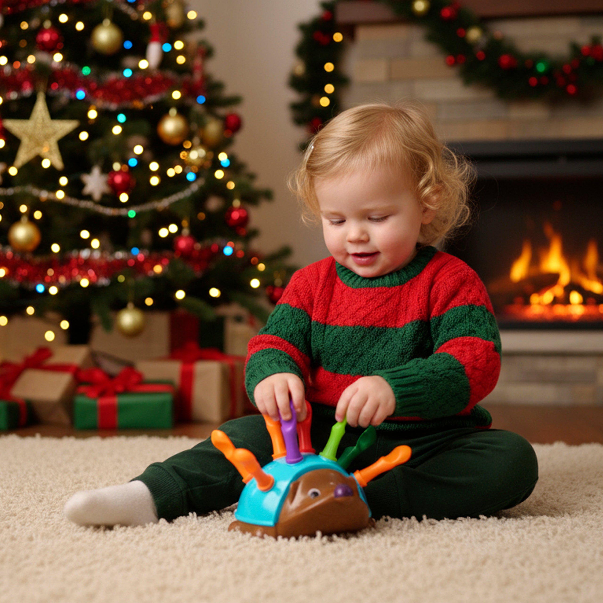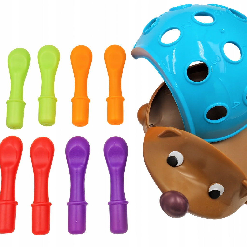 - Trening małej motoryki: Wkładanie i wyjmowanie „kolców” wzmacnia chwyt, precyzję ruchu i koordynację ręka–oko